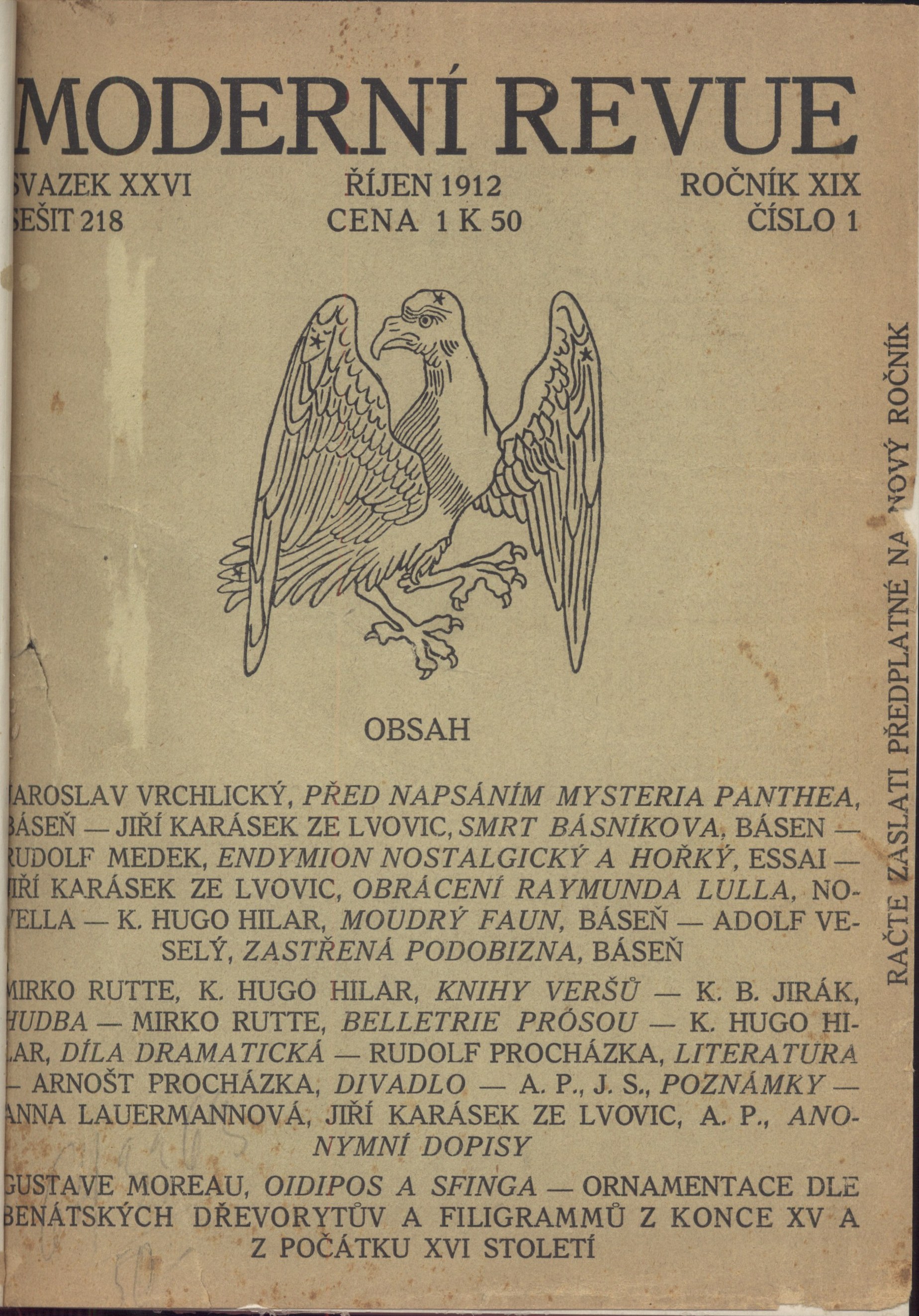 Klíčová slova literatura * česká literatura * světová literatura * literární kritiky * překlady * próza * poezie * grafické listy * symbolismus * dekadence * r. 1912-1913 * české časopisy