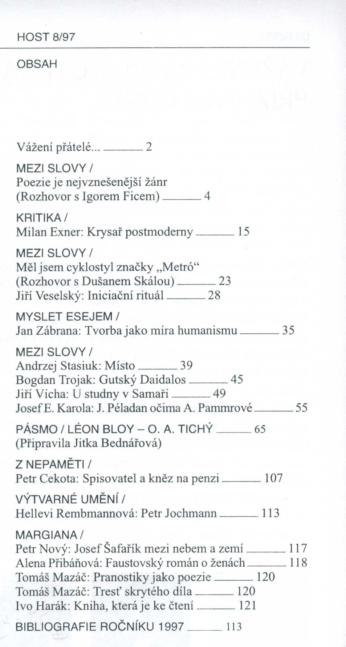 Názvové údaje Host : literární revue Další autoři Balaštík, Miroslav, 1971- (Šéfredaktor, odpovědný redaktor) Korp. Spolek přátel vydávání časopisu Host (Nakladatel, vydavatel) Roč., číslo Ročník 13, číslo 1-8, 1997 Nakladatel Brno : Spolek přátel vydávání časopisu Host, 1997 Výrobce Blansko : Reprocentrum Rozsah ilustrace, fotografie, portréty, faksimile ; 21 cm ISSN 1211-9938 Země vyd. Česko Jazyk dok. čeština Poznámky Barevné obálky, čb. ilustrace, fotografie, portréty a faksimile. - V roce 1997 vyšlo 8 čísel