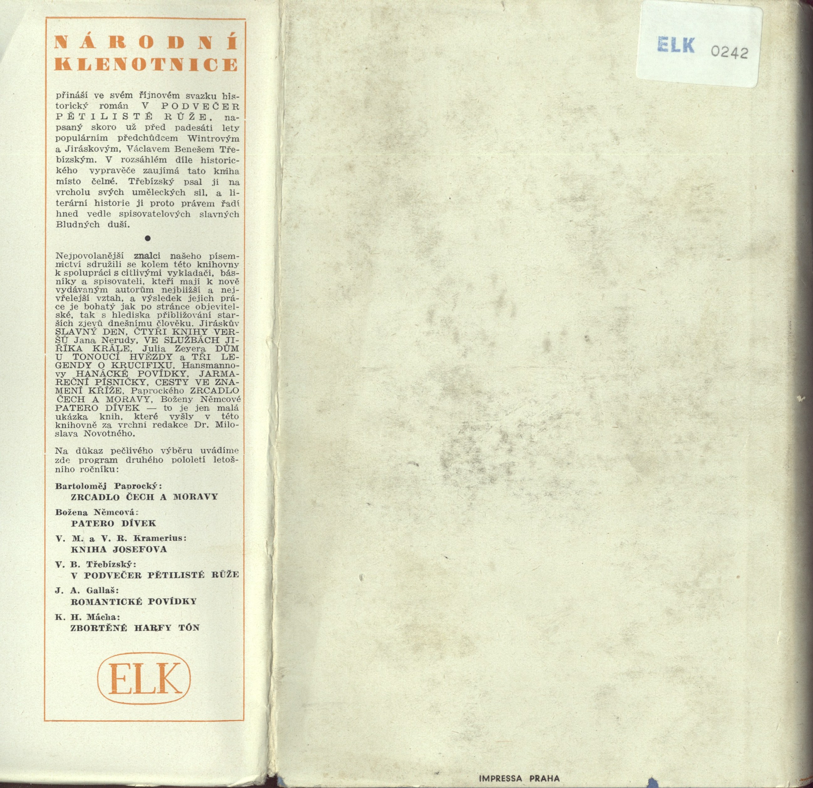 Obálku vytiskla: Impressa Praha.