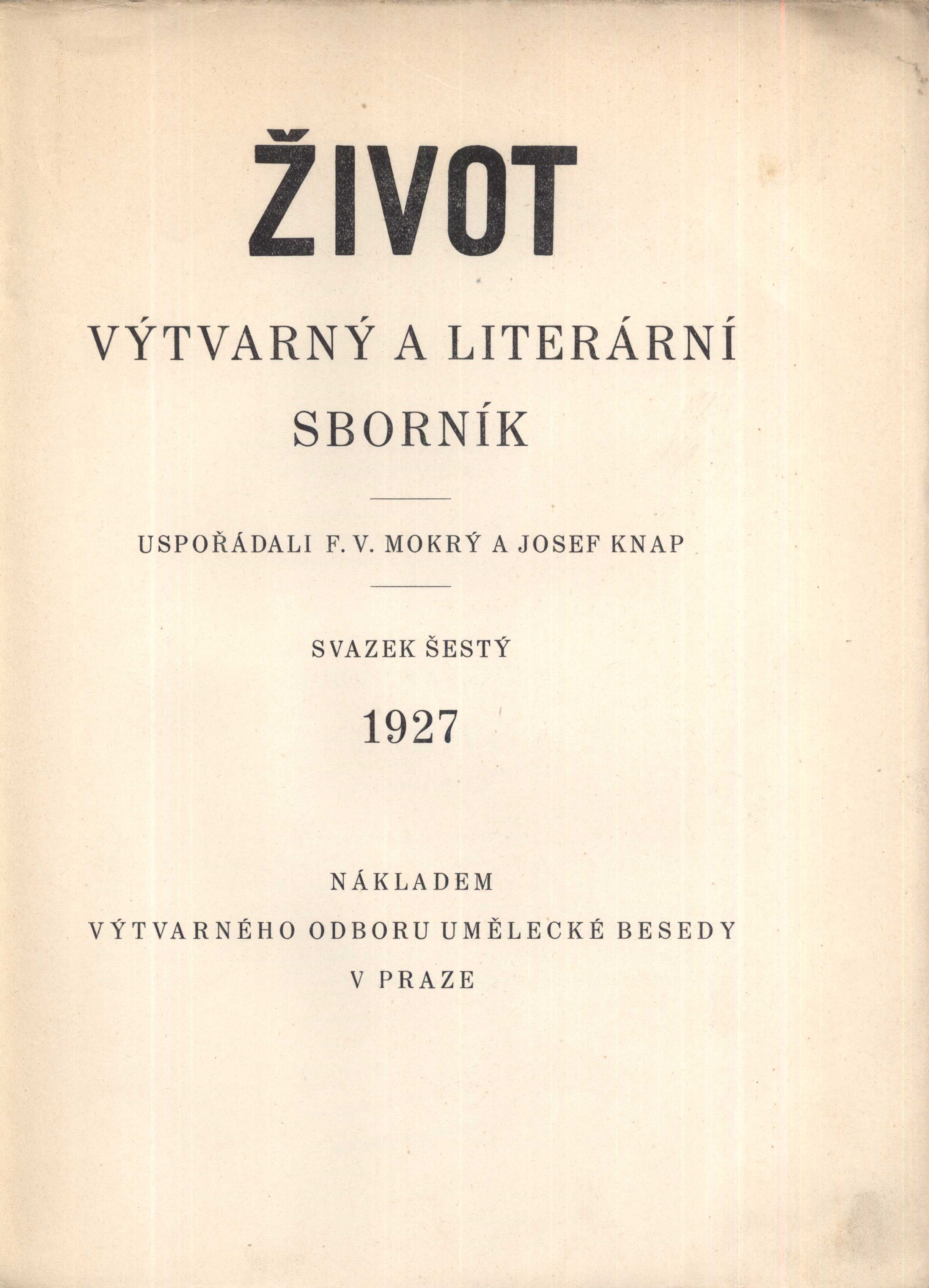 Názvové údaje Život : výtvarný a literární sborník Záhlaví-korpor. Výtvarný odbor Umělecké besedy (Praha) (Autor) (Nakladatel, vydavatel) Další autoři Mokrý, František Viktor, 1892-1975 (Sestavovatel, kompilátor) (Knižní grafik) Knap, Josef, 1900-1973 (Sestavovatel, kompilátor) Vořechová-Vejvodová, Marie, 1889-1974 (Ilustrátor) Sedláček, Vojtěch, 1892-1973 (Grafický technik) (Iluminátor) Korp. Orbis (tiskárna) (Tiskař) V. Neubert a synové (firma) (Jiná role) Roč., číslo Svazek šestý, 1927 Nakladatel V Praze : nákladem Výtvarného odboru Umělecké besedy, 1927 Výrobce Knihtiskárna "Orbis" Rozsah 59 stran, 48 nečíslovaných stran obrazové přílohy : ilustrace ; 29,5 cm + 3 nečíslované listy grafické přílohy ISBN Brožováno Země vyd. Česko Jazyk dok. čeština Poznámky V tiráži odlišné datum vydání: "Vyšel v prosinci 1926".