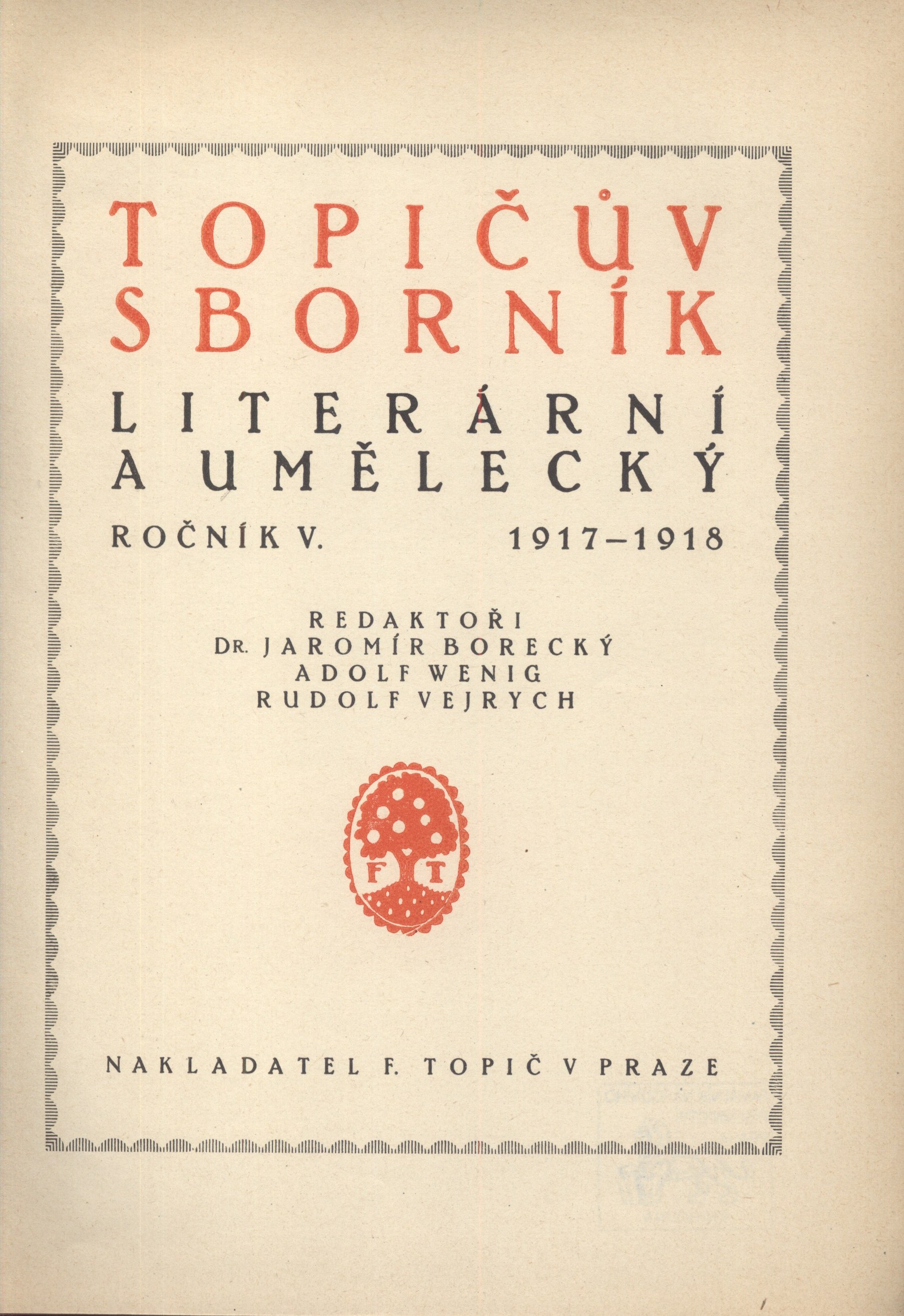 Názvové údaje Topičův sborník literární a umělecký Další autoři Borecký, Jaromír, 1869-1951 (Redaktor, výkonný redaktor) Wenig, Adolf, 1874-1940 (Redaktor, výkonný redaktor) Vejrych, Rudolf, 1882-1939 (Redaktor, výkonný redaktor) Korp. F. Topič (nakladatelství) (Nakladatel, vydavatel) Unie (tiskárna) (Tiskař) Roč., číslo Ročník 5, číslo 1-12, 1917/1918 Nakladatel V Praze : F. Topič, 1917-1918 Výrobce Tiskem Unie Rozsah 568 stran, 13 nečíslovaných listů obrazových příloh : ilustrace ; 23 cm Země vyd. Česko Jazyk dok. čeština Poznámky Čb. ilustrace a fotografie v textu. - Obsahuje 13 nečíslovaných obrazových příloh s barevnými a tonovými reprodukcemi obrazů a plastik