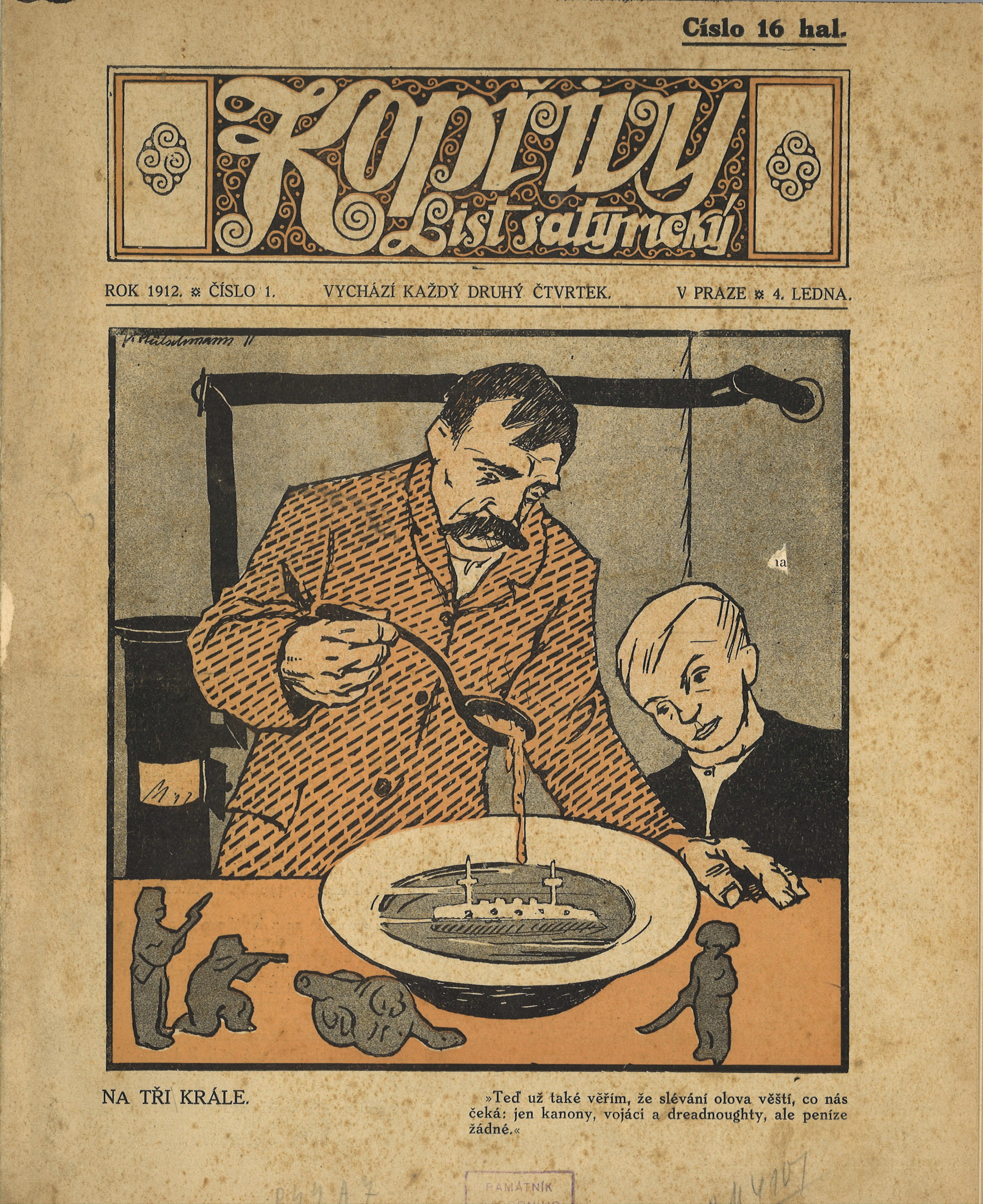 Názvové údaje Kopřivy : list satyrický Další autoři Stivín, Josef, 1879-1941 (Editor) Süss, Josef (Nakladatel, vydavatel) Stroff, Karel, 1881-1929 (Ilustrátor) Tratnik, Franc, nar. 1881 (Ilustrátor) Blažek, Josef Tomáš, 1884-1962 (Ilustrátor) Naske, František Xaver, 1884-1959 (Ilustrátor) Lada, Josef, 1887-1957 (Ilustrátor) Hübschmann, Václav, 1886-1917 (Ilustrátor) Hudeček, Stanislav, 1872-1947 (Ilustrátor) Vavřina, Karel, 1884-1929 (Ilustrátor) Korp. Lidová knihtiskárna J. Skalák a spol. (Tiskař) Polygraphia (Praha, Česko) Roč., číslo Číslo 1-26, 1912 Nakladatel V Praze : J. Süss, 1912 Výrobce Tiskem Práva Lidu (Skalák a spol.) Rozsah ilustrace ; 31,5 cm Země vyd. Česko Jazyk dok. čeština Poznámky Dvacet šest čísel ve dvaceti šesti sešitech. - Barevné zdobené obálky (obsahují většinou jednu celostránkovou barevnou satirickou ilustraci). - Množství barevných i černobílých celostránkových satirických kreseb (kreslené vtipy), ilustrací článků apod. různých autorů (např.K. Stroff, T. R. Chvojka, F. Naske, Josef Lada, V. Hübschmann, F. Tratnik, F. Naske, Stanislav Hudeček, K. Vavřina). - Iniciálová výzdoba.