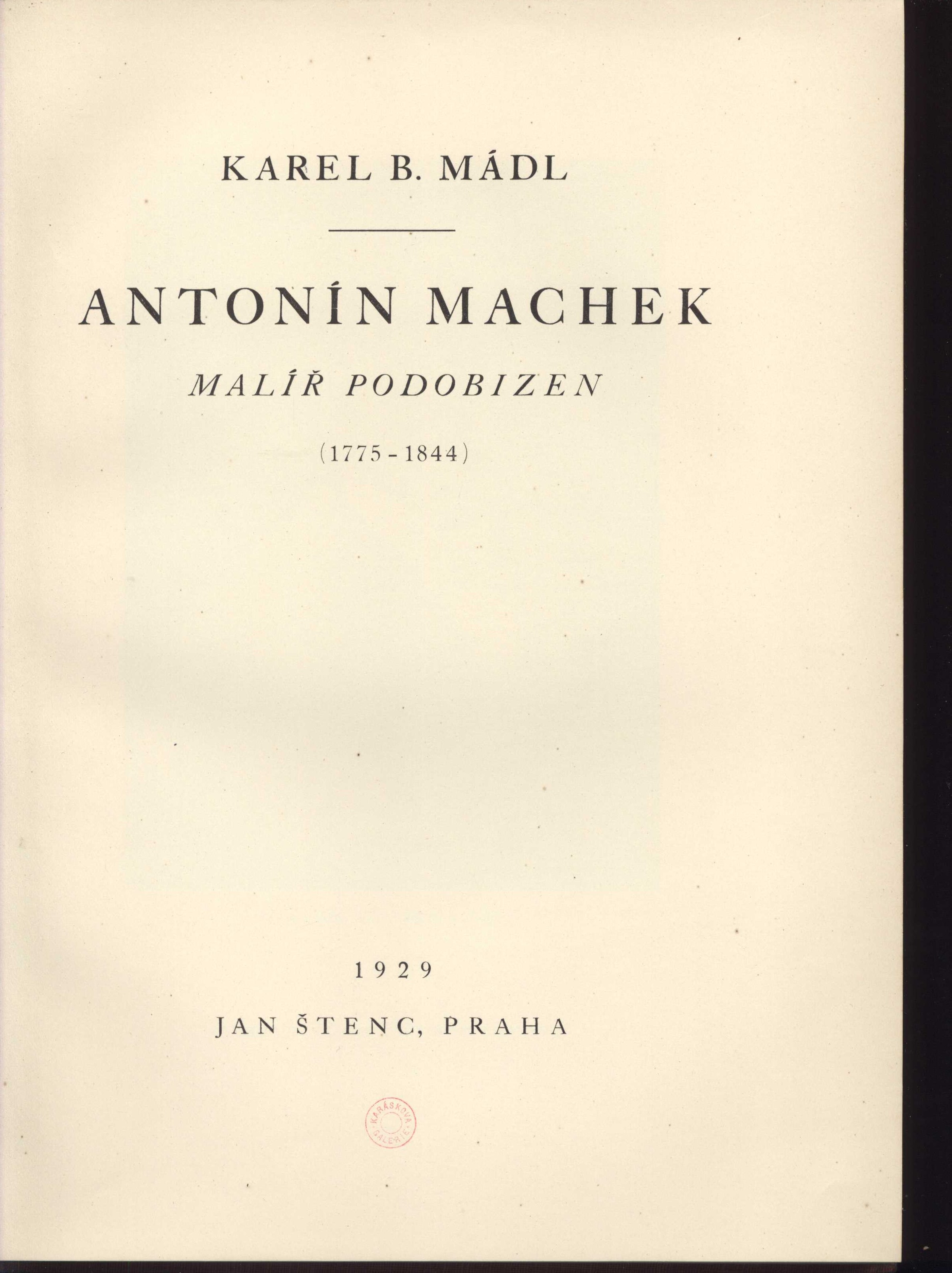 Názvové údaje Antonín Machek : malíř podobizen : (1775-1844) / Karel B. Mádl Osobní jméno Mádl, Karel Boromejský, 1859-1932 (Autor) Další autoři Štencovo nakladatelství (Nakladatel, vydavatel) Průmyslová tiskárna v Praze (Tiskař) Nakladatel Praha : Jan Štenc, 1929 Výrobce Průmyslová tiskárna Rozsah 135 stran : ilustrace ; 27,5 cm ISBN (Vázáno) Země vyd. Česko Jazyk dok. čeština Poznámky Zdobená celoplátěná vazba. - Bibliografické údaje. - Seznam podobiznového díla A. Machka. - Seznam vyobrazení. - Černobílé reprodukce Machkových prací v textu a částečně na křídovém papíře (paginovány: s. 81-135).