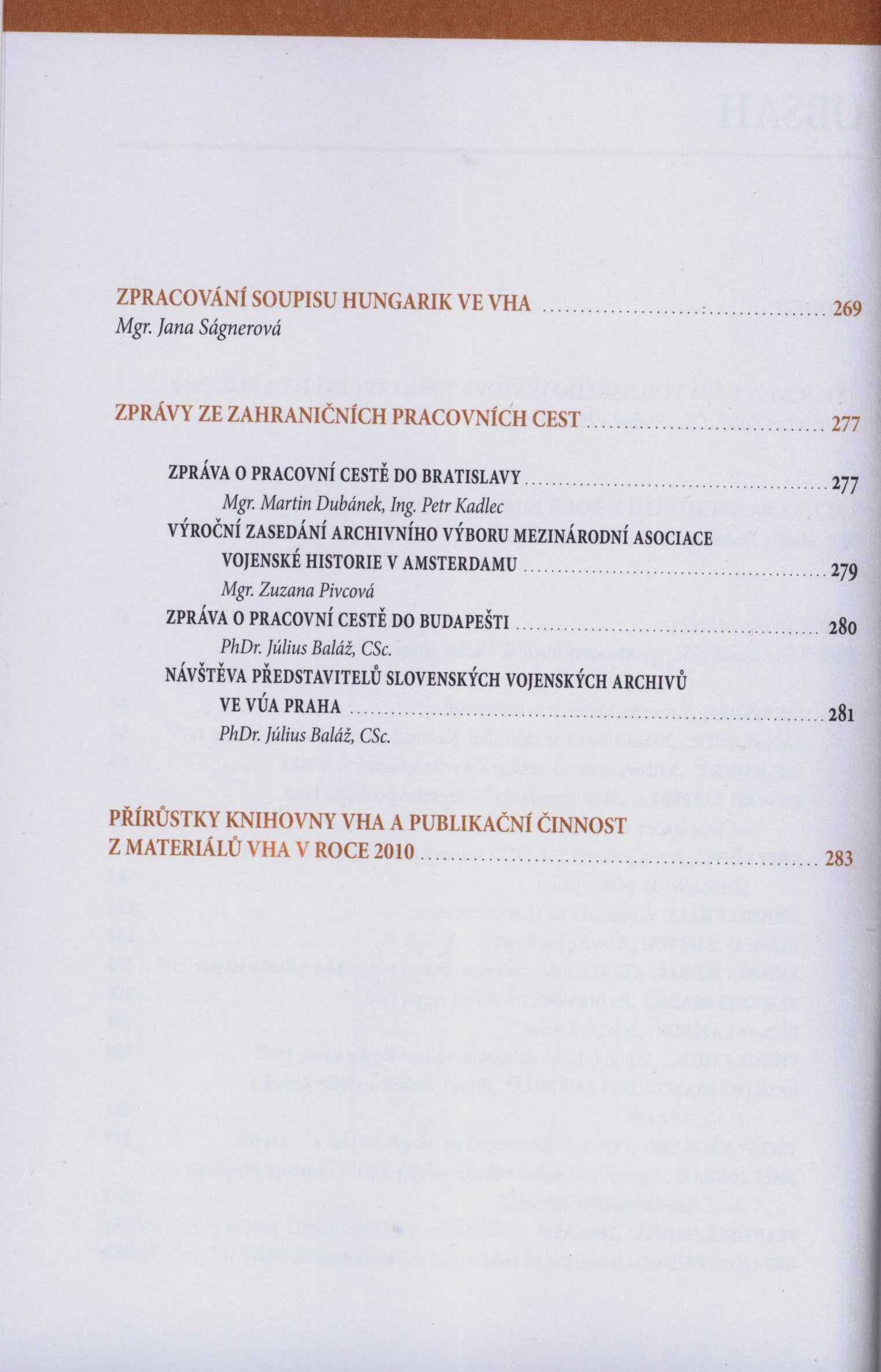 Názvové údaje Ročenka 2010 / Vojenský historický archiv ; sestavili Július Baláž, Martin Dubánek Záhlaví-korpor. Vojenský historický archiv (Autor) Další autoři Baláž, Július, 1959- (Sestavovatel, kompilátor) Dubánek, Martin, 1974- (Sestavovatel, kompilátor) Schulzová, Libora (Knižní grafik) Korp. Česko. Ministerstvo obrany (Odbor komunikace a propagace) (Nakladatel, vydavatel) Roč., číslo 2010 Údaje o vydání 1. vydání Nakladatel Praha : Ministerstvo obrany České republiky - Odbor komunikace a propagace, 2011 Rozsah 285 stran : ilustrace, faksimile ISBN 978-80-7278-558-2 (brožováno) Země vyd. Česko Jazyk dok. čeština Poznámky Zdob. obálka. - Barevné i čb. fotografie a faksimile