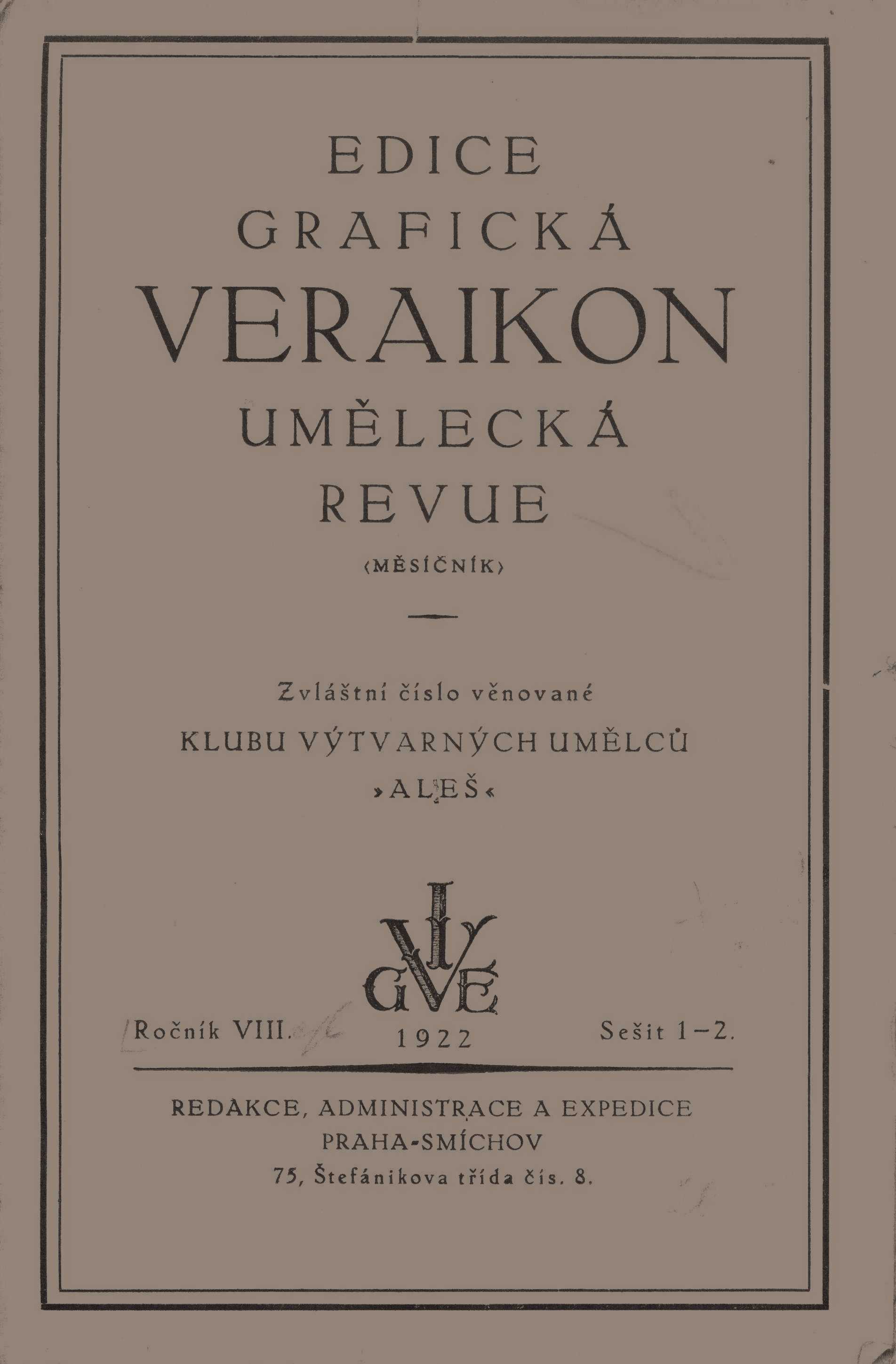 Názvové údaje Veraikon : umělecká revue : edice grafická Další autoři Pacovský, Emil, 1879-1948 (Editor) (Nakladatel, vydavatel) Korp. Grafia (tiskárna, nakladatelství) (Tiskař) Roč., číslo ročník 8, číslo 1-12, 1922 Nakladatel Praha : Emil Pacovský, 1922 Výrobce V Praze : Tiskem Grafie, 1922 Rozsah 116, 27 stran, 24 listů obrazových příloh, 1 nečíslovaný list obrazové přílohy : ilustrace Země vyd. Česko Jazyk dok. čeština Poznámky Dvanáct čísel v pěti sešitech. - Jednotlivé sešity tématicky zaměřené. - Čečnobílé reprodukce v textu a na přiložených listech. - Ročník obsahuje celkem 24 číslovaných černobílých příloh a 1 barevnou nečíslovanou přílohu v sešitě 7-8 (přílohy uvedeny v obsahu ročníku). - Samostatně průběžně stránkovaná příloha Rozhled.