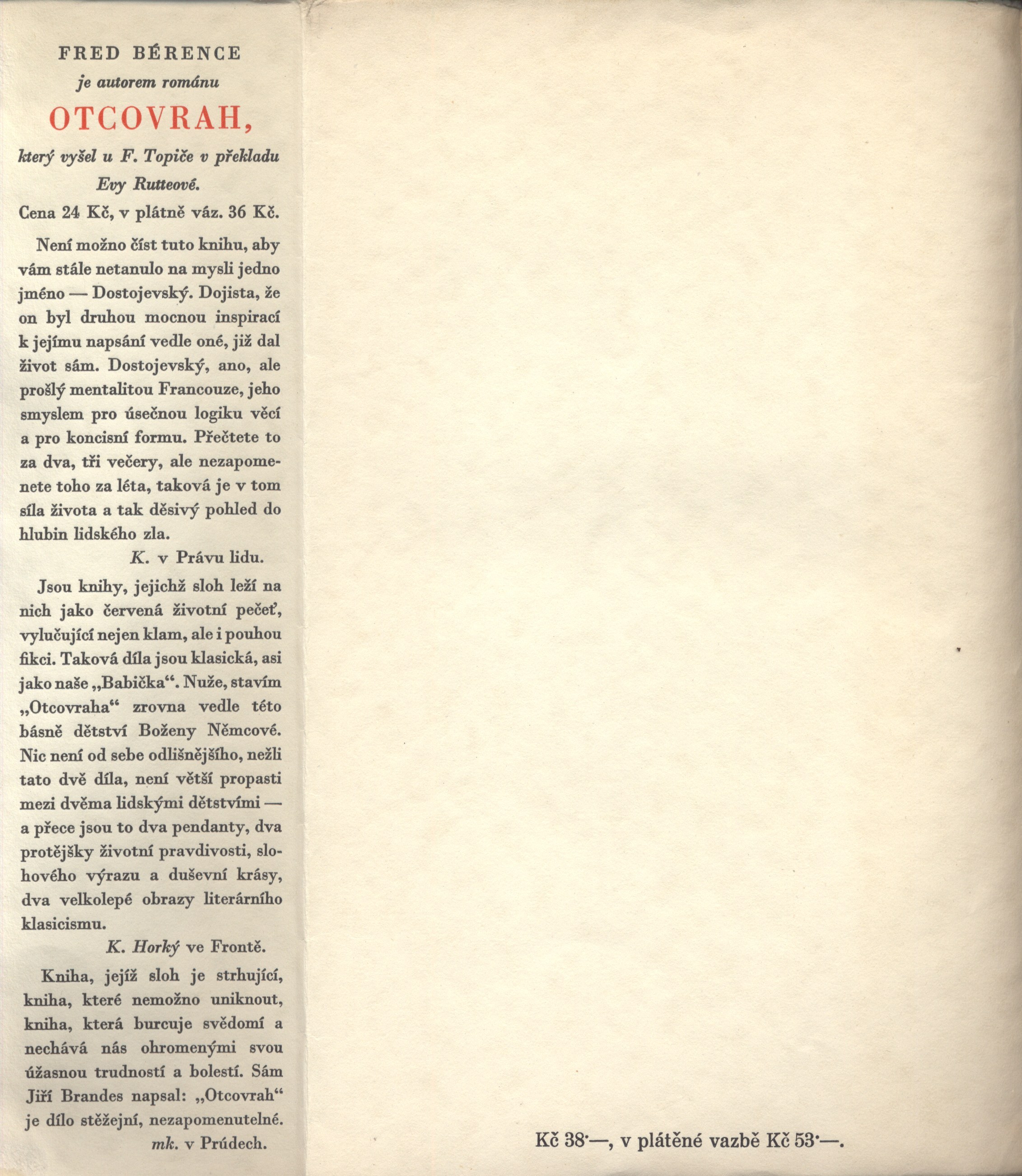 Topičovy Bílé knihy, (F. Topič)Země vyd. Česko Jazyk dok. čeština Jazyk orig. francouzština Poznámky Obálka s ilustrací. - Na záložkách upoutávky. - Dvoubarevný titulní list s ilustrací. - Vložená černobílá obrazová příloha. - Předmluva. - Bibliografie. - Obsah. - Edice nad tiráží, značka Kmene. - Seznam edice.