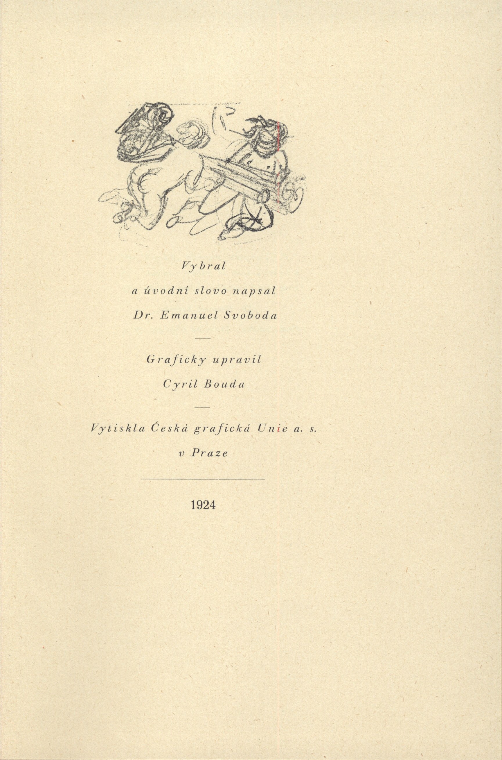Názvové údaje Akty / Mikoláš Aleš ; [vybral a úvodní slovo napsal Emanuel Svoboda ; graficky upravil Cyril Bouda] Osobní jméno Aleš, Mikoláš, 1852-1913 (Umělec) (Ilustrátor) Další autoři Svoboda, Emanuel, 1883-1967 (Sestavovatel, kompilátor) (Autor úvodu atd.) Bouda, Cyril, 1901-1984 (Ilustrátor) (Knižní grafik) Korp. F. Topič (nakladatelství) (Nakladatel, vydavatel) Česká grafická Unie (tiskárna a nakladatelství) (Tiskař obrazu) Nakladatel V Praze : Nakladatel F. Topič, 1924 Výrobce (Česká grafická Unie) Rozsah xvi, 80 s. : il. ; 23 cm ISBN (váz.) Země vyd. Česko Jazyk dok. čeština Poznámky Vazba s nalepenou ilustrovanou obálkou. - Dvoubarevný titulní list s ilustrací. - Úvodní slovo. - Barevná a černobílá obrazová příloha. - Obsah. - Tiráž s ilustrací.
