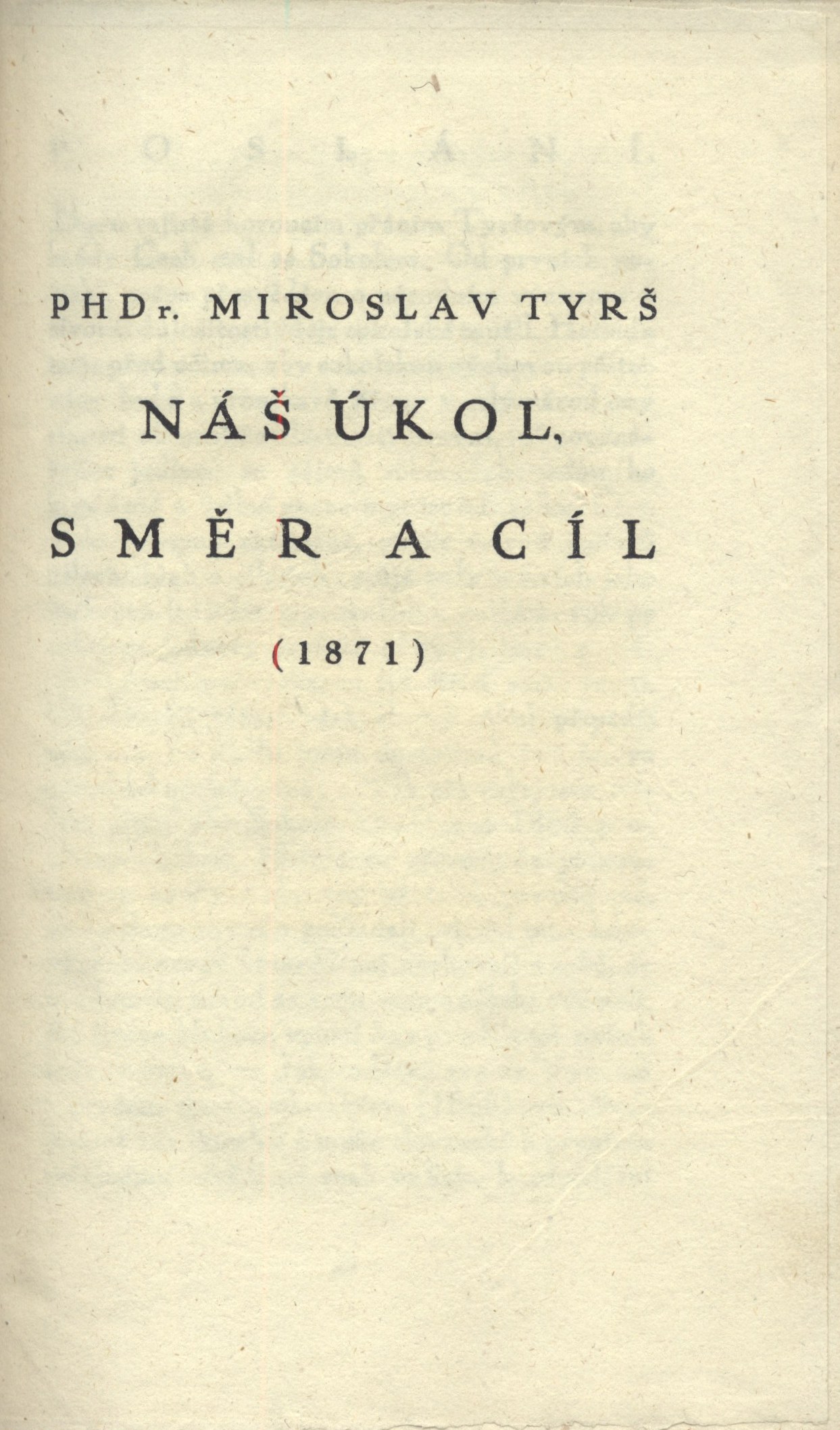 Na titulním listě: "PHDr. Miroslav Tyrš"