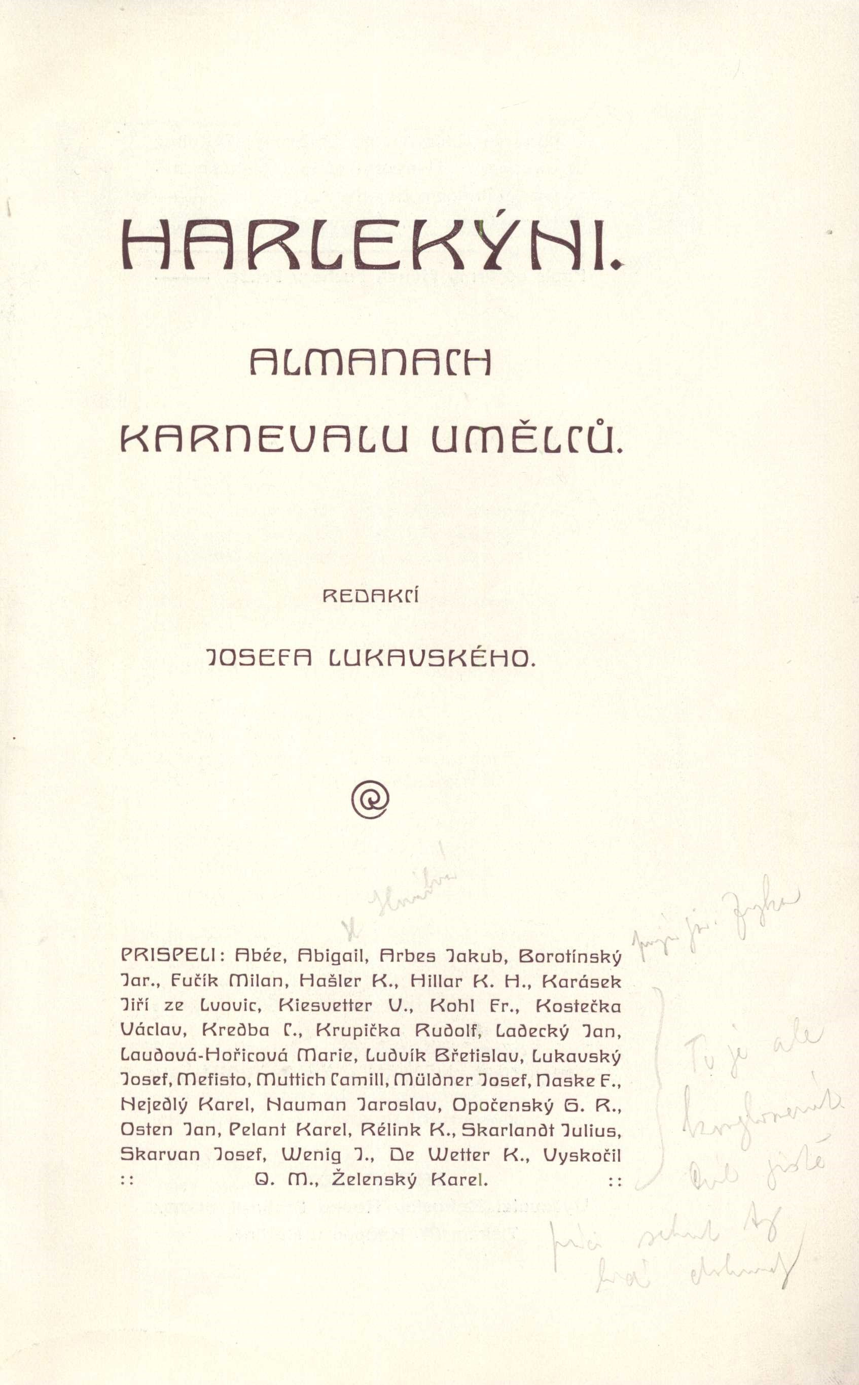 1. Názvové údajeHarlekýni : almanach Karnevalu umělců / redakcí Josefa Lukavského
