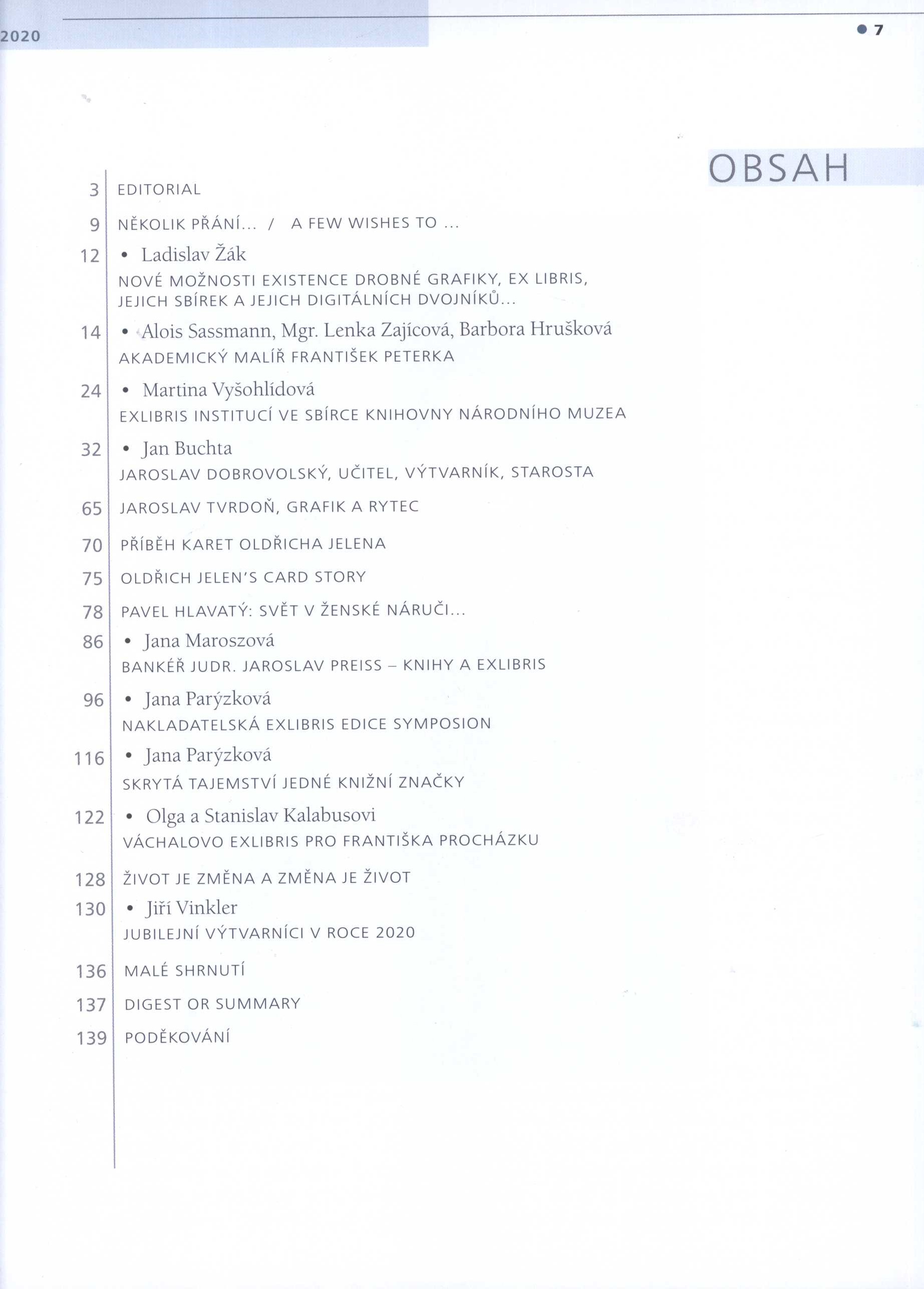 Klíčová slova exlibris * drobná grafika * historie * sběratelé * Česko * r. 2020 * sborníky * ročenky