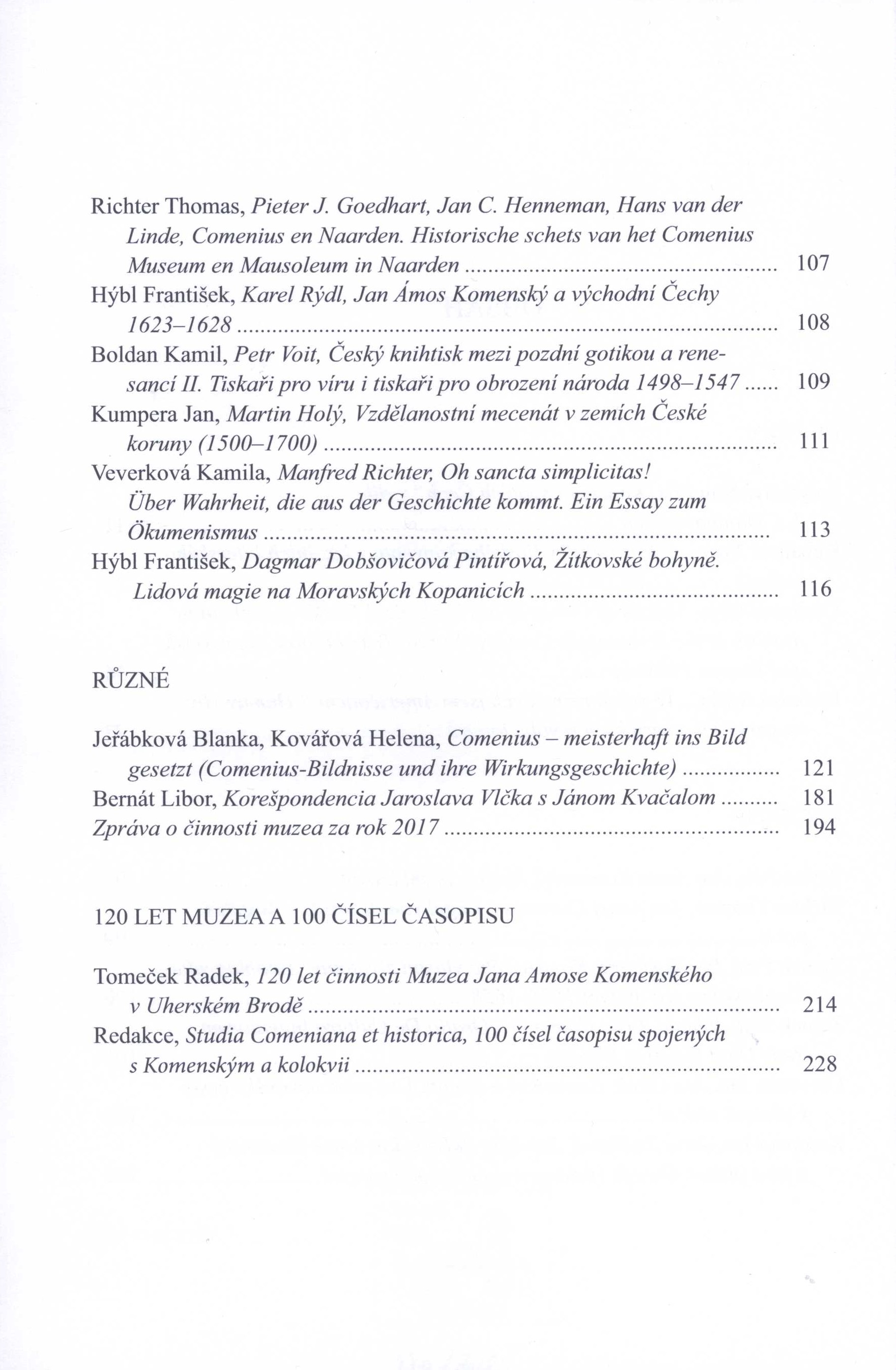 Podnázev na obálce: Commentarii periodici studiis Comenianis colendis nec non saeculorum XVI-XVIII rebus gestis confiniique Moravorum Slovacorumque historiae indagandis