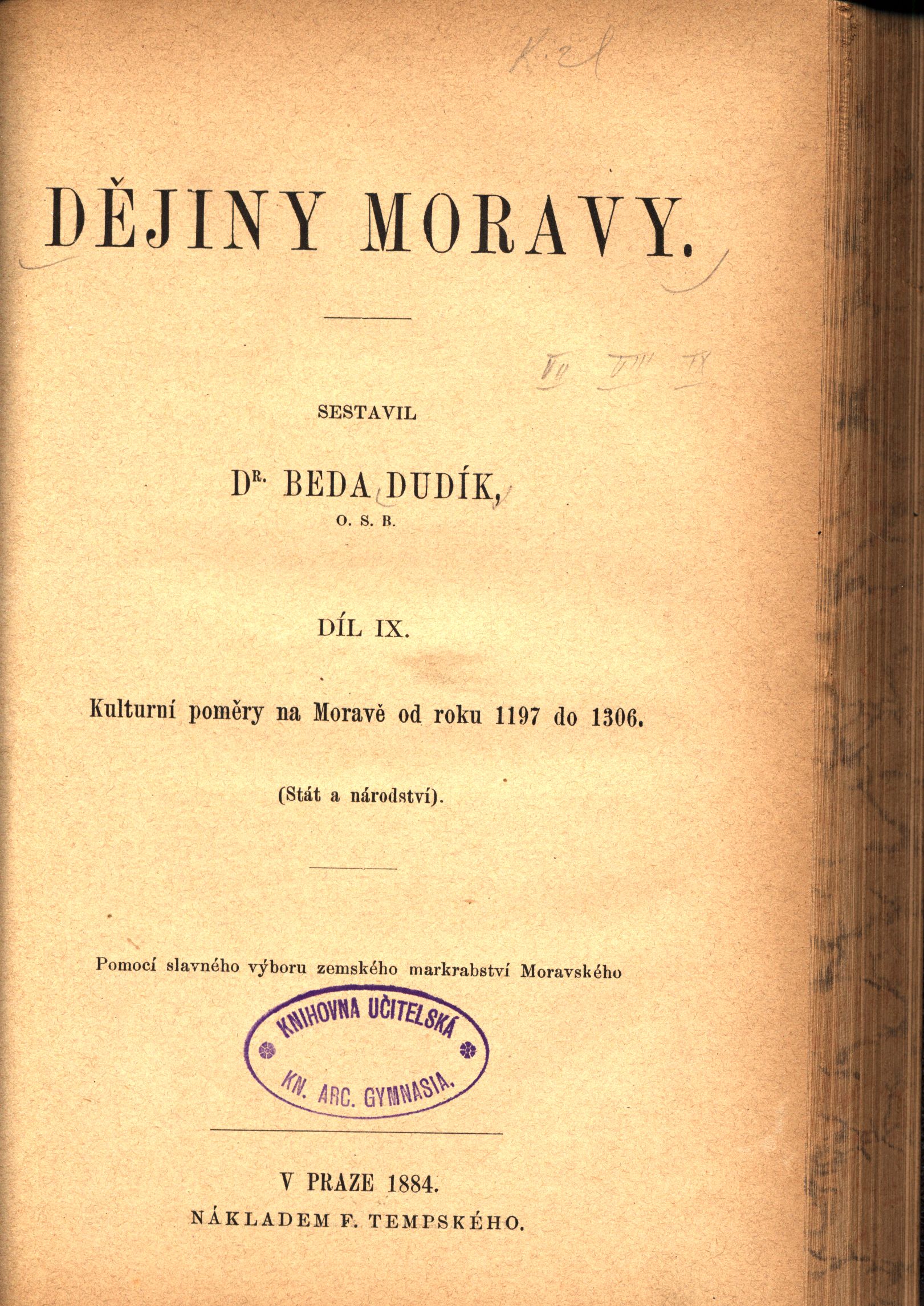 Názvové údaje Dějiny Moravy. Díl IX, Kulturní poměry na Moravě od roku 1197 do 1306 (Stát a národství) / sestavil Beda Dudík Osobní jméno Dudík, Beda, 1815-1890 (Autor) Další autoři Tempsky, Friedrich, 1821-1902 (Nakladatel, vydavatel) Korp. Andreas Haase (nakladatelství a tiskárna) (Tiskař) Nakladatel V Praze : nákladem B. Tempského, 1884 Výrobce C. k. dvorní kněhtiskárna A. Haase Rozsah 299 stran ; 21 cm ISBN (Vázáno) Země vyd. Česko Jazyk dok. čeština Poznámky [Vydáno] pomocí slav. výboru zemského markrabství Moravského (titulní list).