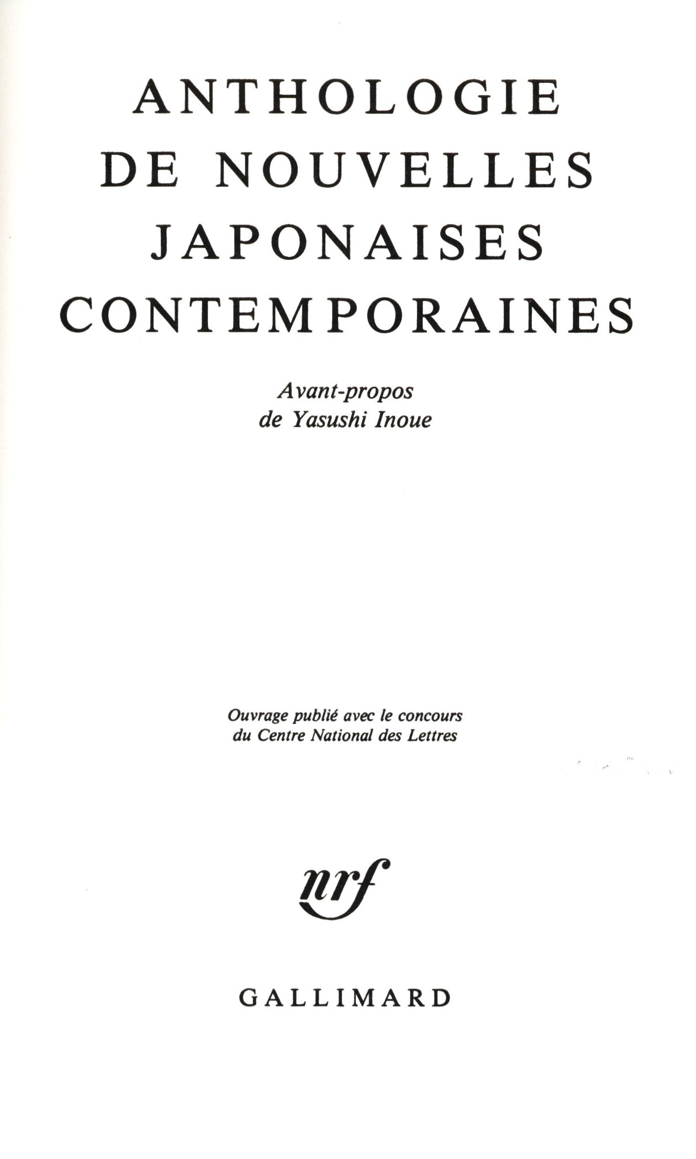 1. Názvové údajeAnthologie de nouvelles japonaises contemporaines / Avant-propos de Yasushi Inoue