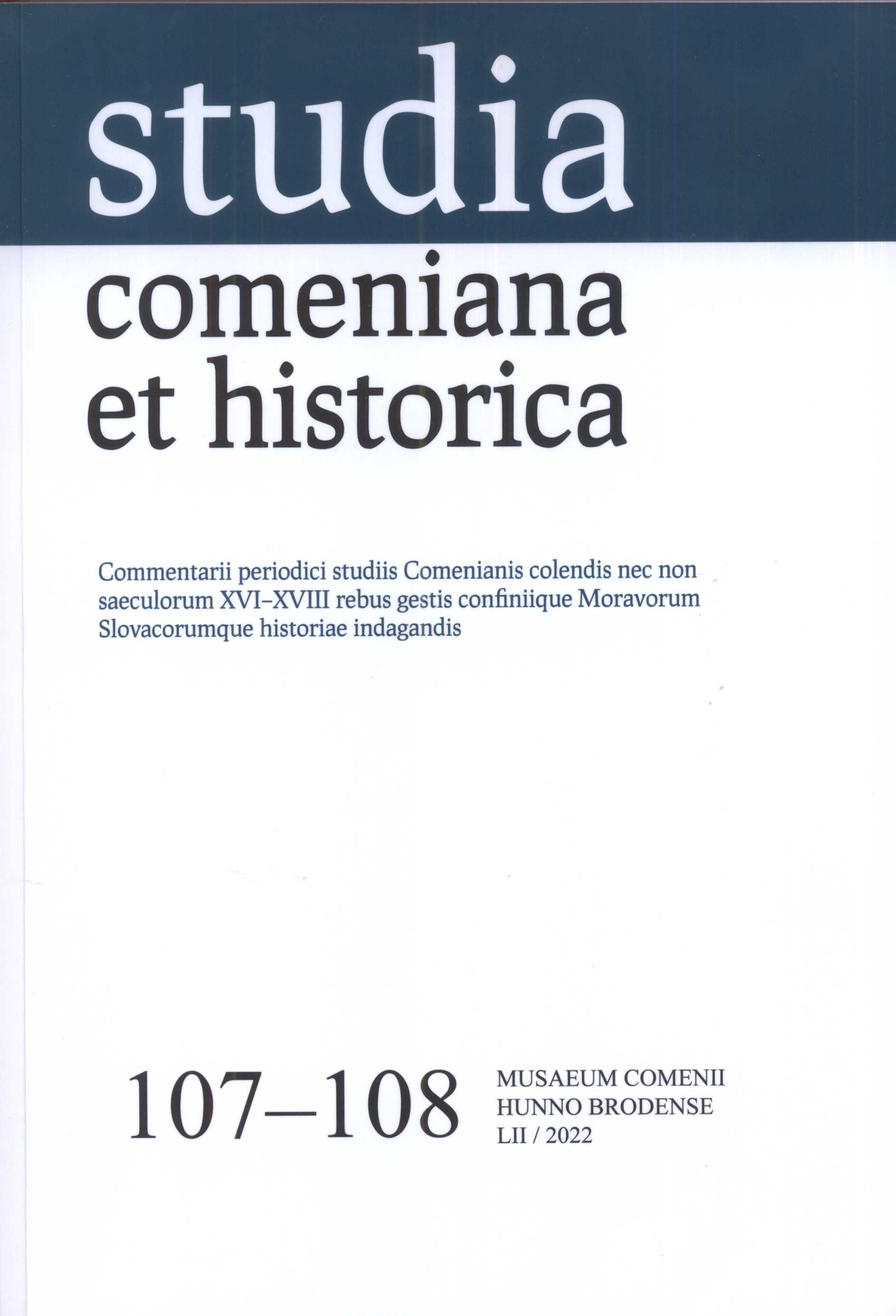 Podnázev na obálce: Commentarii periodici studiis Comenianis colendis nec non saeculorum XVI-XVIII rebus gestis confiniique Moravorum Slovacorumque historiae indagandis