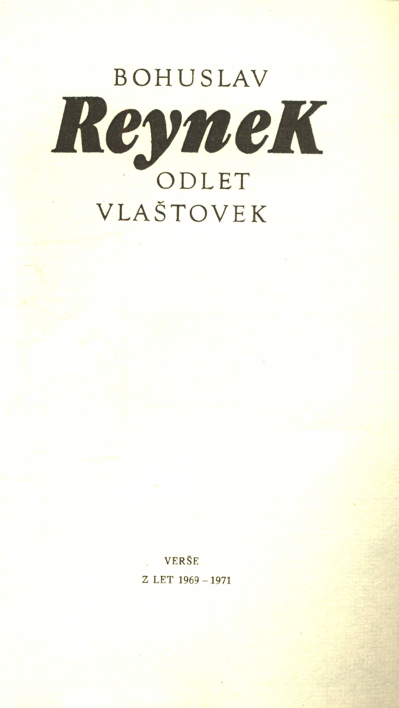 Černá typografická obálka. - Bez vazby (složky volně vložené do obálky). - Ruční papír s vodoznakem "Velké Losiny". - Výzdoba: dvě suché jehly Bohuslava Reynka. - Bibliofilie. - 230 výtisků