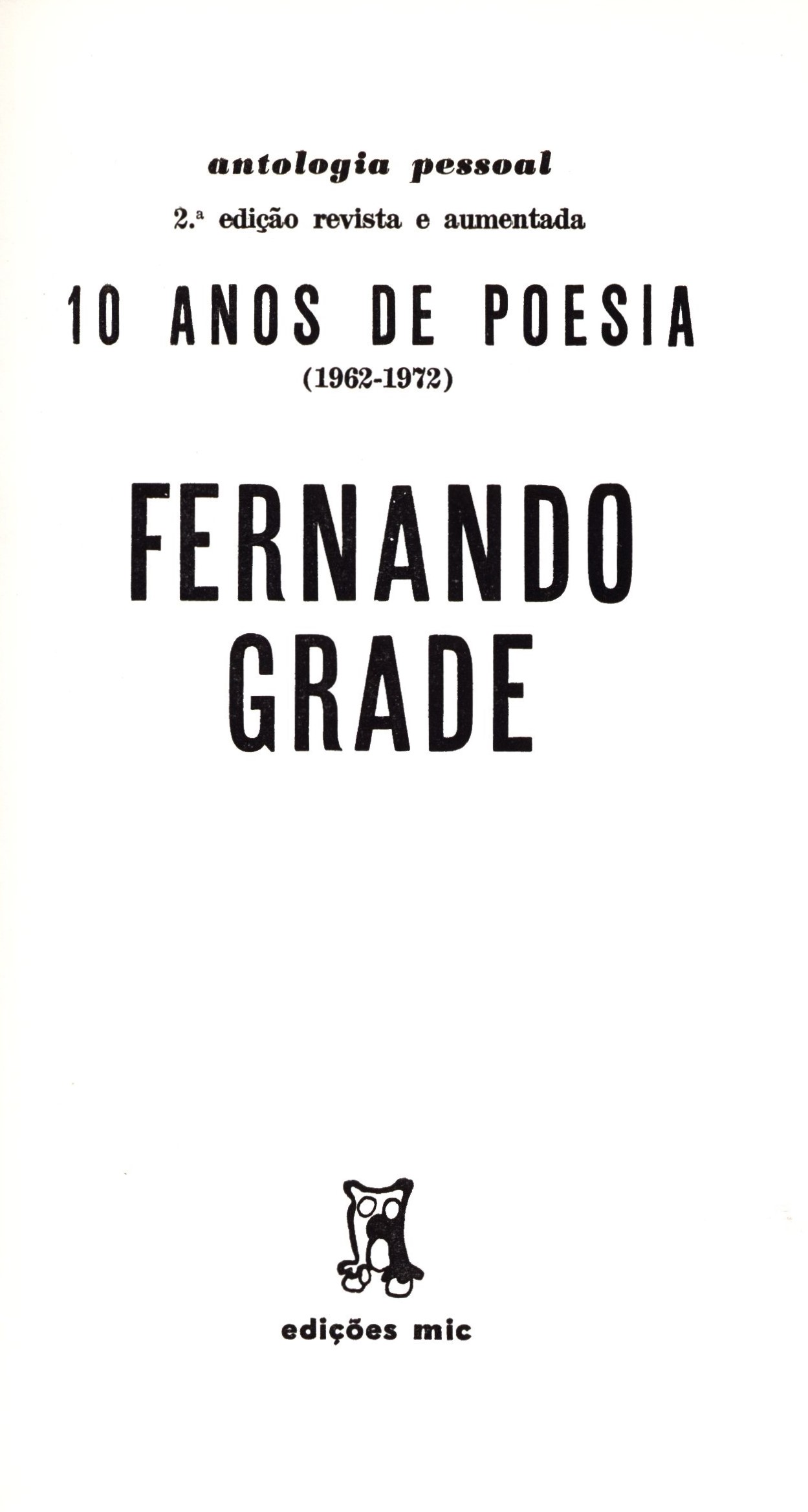 1. Názvové údaje10 anos de poesia (1962-1972) : antologia / Fernando Grade