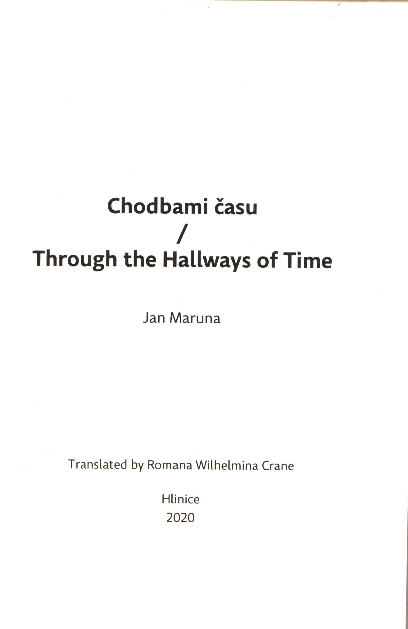 Názvové údaje Chodbami času = Through the hallways of time / Jan Maruna ; translated by Romana Wilhelmina Crane Osobní jméno Maruna, Jan, 1949- (Autor) Další autoři Crane, Romana Wilhelmina, 1990- (Překladatel) Maruna, Jan, 1949- Chodbami času. Maruna, Jan, 1949- Chodbami času. Anglicky Korp. Tribun EU (firma) (Tiskař) Údaje o vydání Vydání první Nakladatel Hlinice : nákladem autora, 2020 Výrobce Brno: Tribun EU, s.r.o. Rozsah 133 stran ; 19 cm ISBN 978-80-907546-8-3 (vázáno) Země vyd. Česko Jazyk dok. čeština * angličtina Jazyk orig. čeština Poznámky Pevná vazba bez přebalu. - Obálka zdobená fotografií. - Text tištěn na střed. - Dvojjazyčná publikace