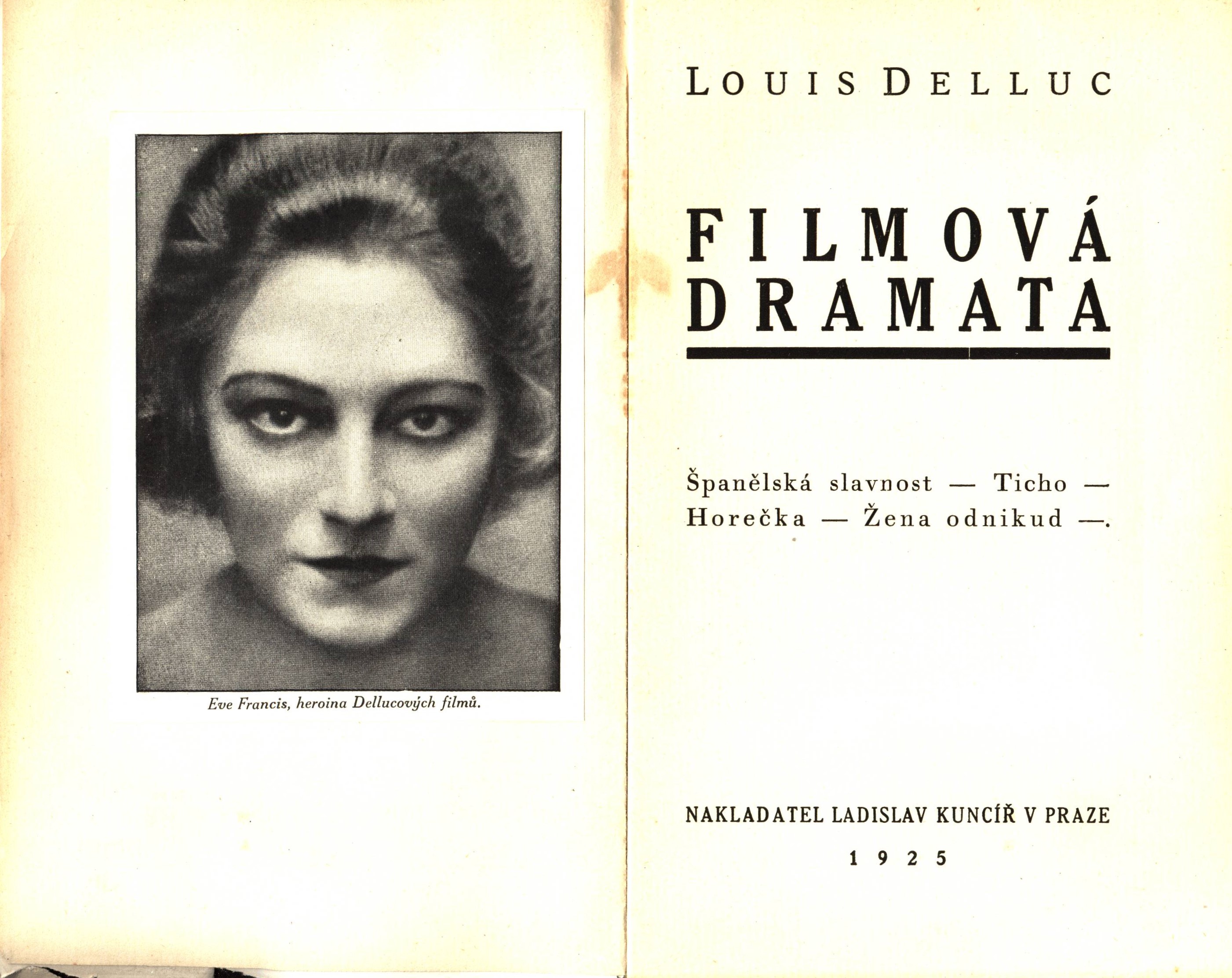 Názvové údaje Filmová dramata / Louis Delluc ; autorisovaný překlad: Jane ; obálka a typografická úprava Karla Teigeho Osobní jméno Delluc, Louis, 1890-1924 (Autor) Další autoři Teige, Karel, 1900-1951 (Autor obálky) (Typograf) Korp. Ladislav Kuncíř (nakladatelství a knihkupectví) (Nakladatel, vydavatel) František Obzina (tiskárna, nakladatelství) (Tiskař) Nakladatel V Praze : Ladislav Kuncíř, 1925 Výrobce Ve Vyškově na Moravě : tiskem Frant. Obziny Rozsah 77 stran ; 20 cm ISBN (Brožováno) Země vyd. Česko Jazyk dok. čeština Jazyk orig. francouzština Poznámky Přeloženo z francouzštiny. - V tiráži uvedeno: Vydala nakladatelská společnost s.r.o. Rozmach. - Dvoubarevná typografická obálka s fotografií. - Frontispis s nalepeným černobílým portrétem. - Předmluva