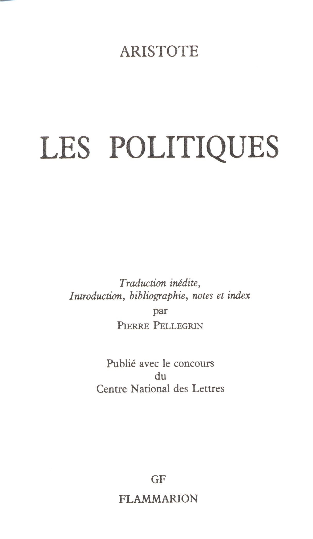 Názvové údaje Les politiques / Aristote ; traduction inédite, introduction, bibliographie, notes et index par Pierre Pellegrin ; publié avec le concours du Centre National des Lettres Autor Aristotelés, 384-322 př. Kr. (Autor) Další autoři Pellegrin, Pierre, (Překladatel) 1944- Korp. Centre national des lettres (Nakladatel, vydavatel) Flammarion (nakladatelství) (Nakladatel, vydavatel) Bussière (firma) (Nakladatel, vydavatel) Údaje o vydání 2e éd., revue et corrigée Nakladatel Paris : Flammarion, 1990 Výrobce Saint-Amand : Imprimerie Bussière Rozsah 575 stran : ilustrace, mapy ; 18 cm ISBN 2-08-070490-7 (brožováno) Edice GF ; 490