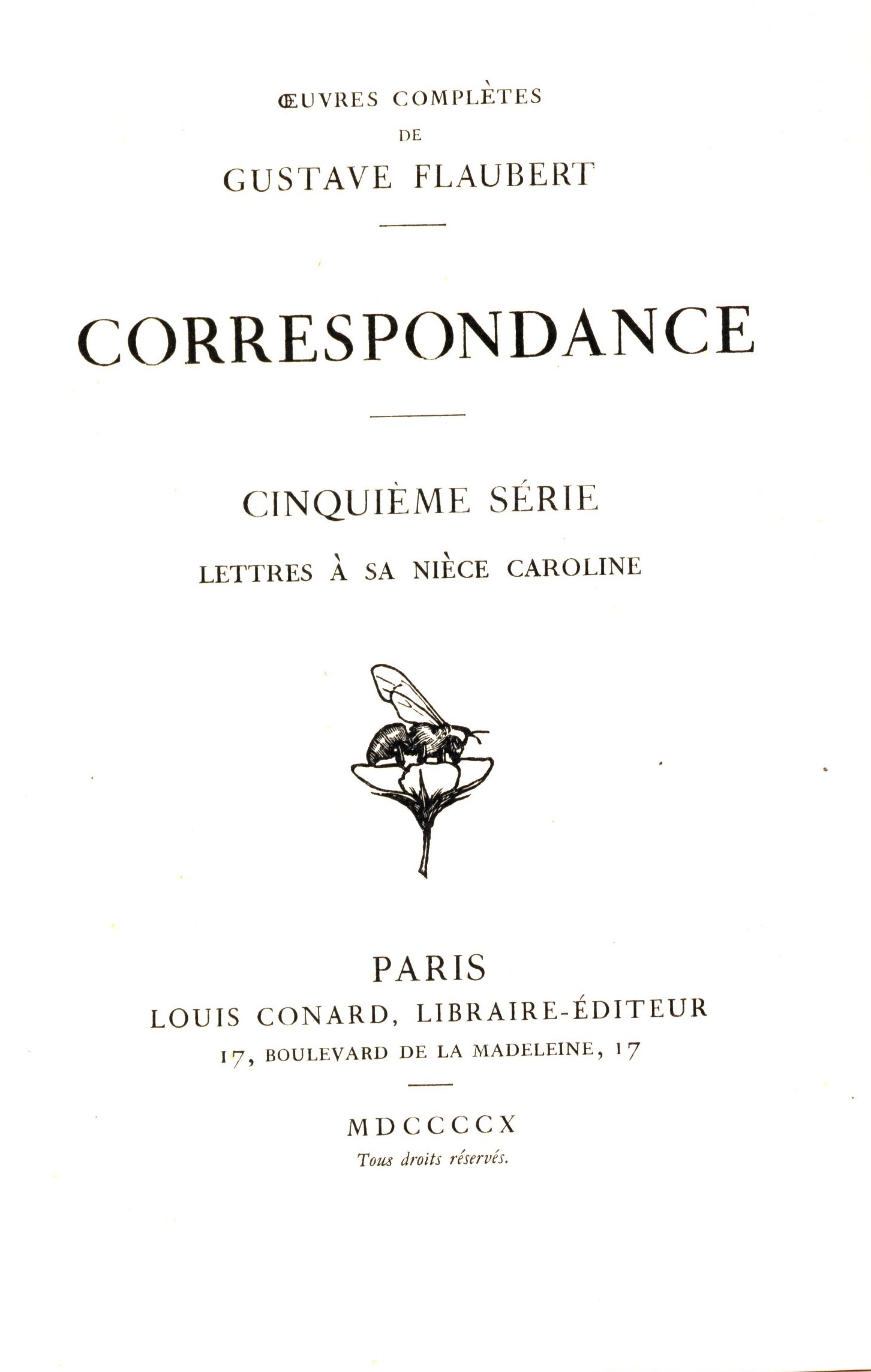 Názvové údaje Correspondance. Cinquième Série, Lettres à sa nièce Caroline / Gustave Flaubert Osobní jméno Flaubert, Gustave, 1821-1880 (Autor) Další autoři Louis Conard (nakladatelství) (Nakladatel, vydavatel) Nakladatel Paris : Louis Conard, 1910 Rozsah 576 stran ; 21 cm ISBN (vázáno) Edice Oeuvres complètes, Gustave Flaubert