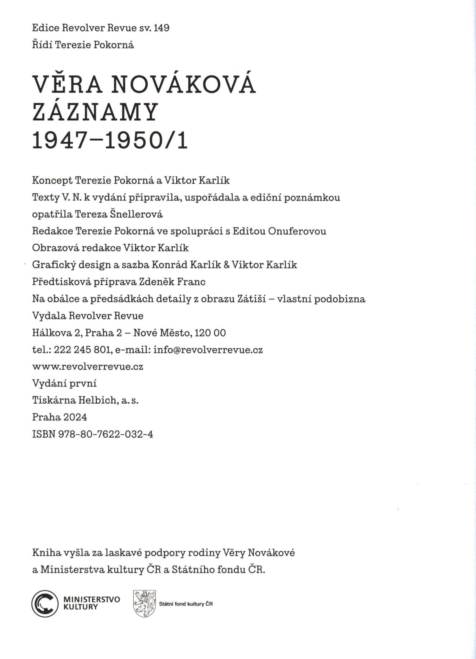 1. Názvové údajeVěra Nováková : záznamy 1947-1950/1 / texty V.N. k vydání připravila, uspořádala a ediční poznámkou opatřila Tereza Šnellerová