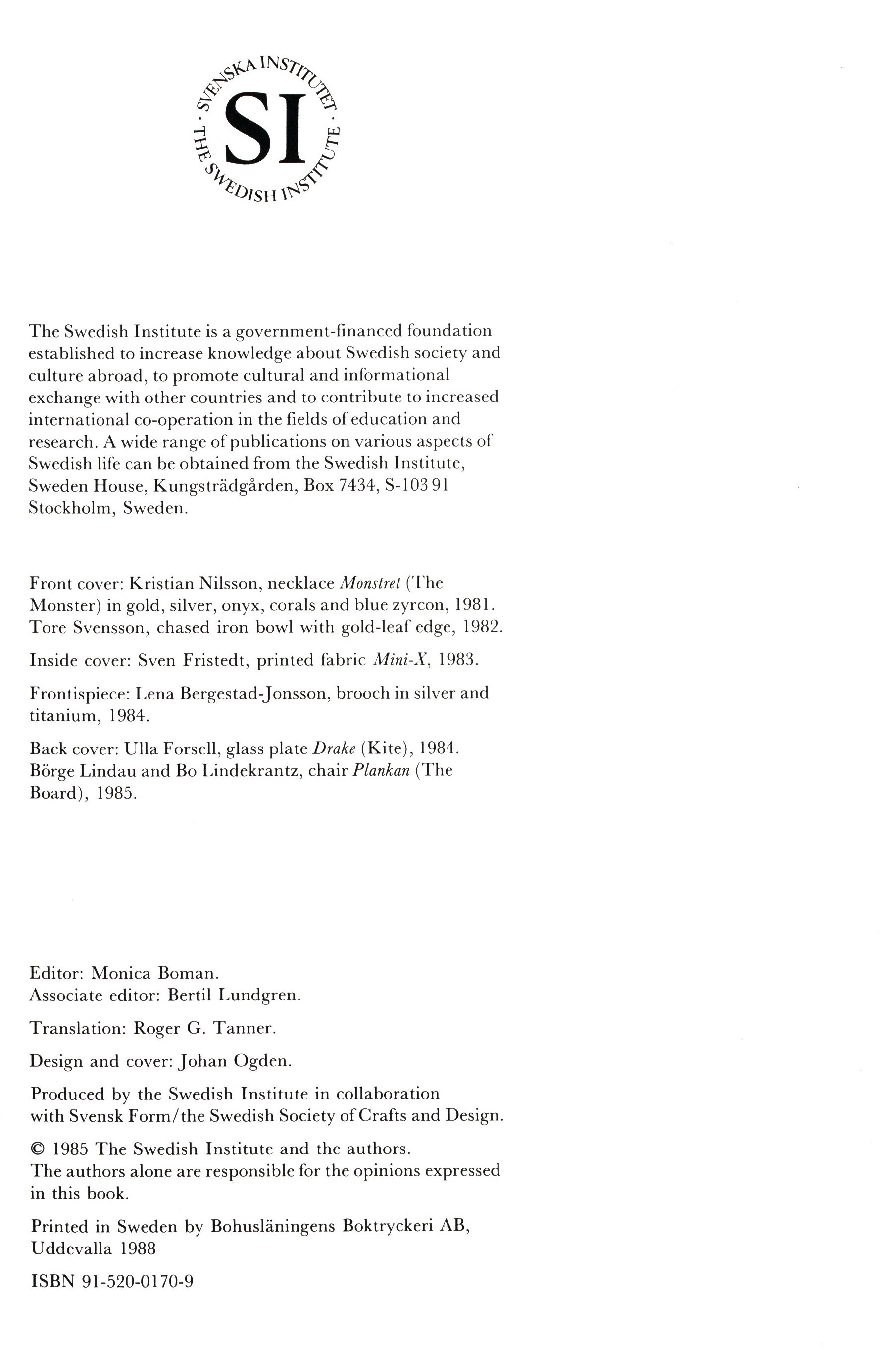 Klíčová slova design * průmyslový design * užité umění * užitkový design * umělecký design * Švédsko * obrazové publikace