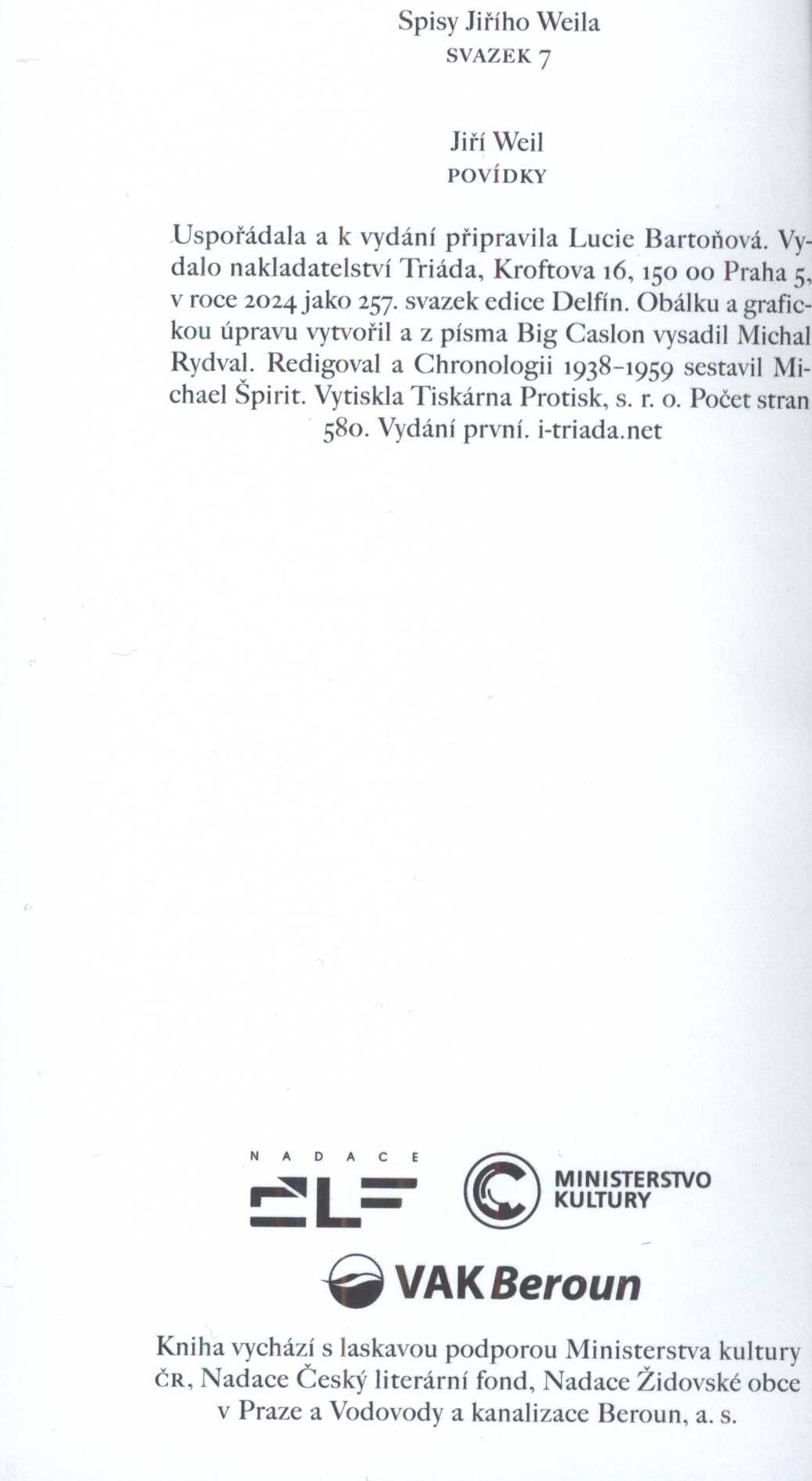 Delfín, (Triáda) Spisy, Jiří Weil (Triáda)