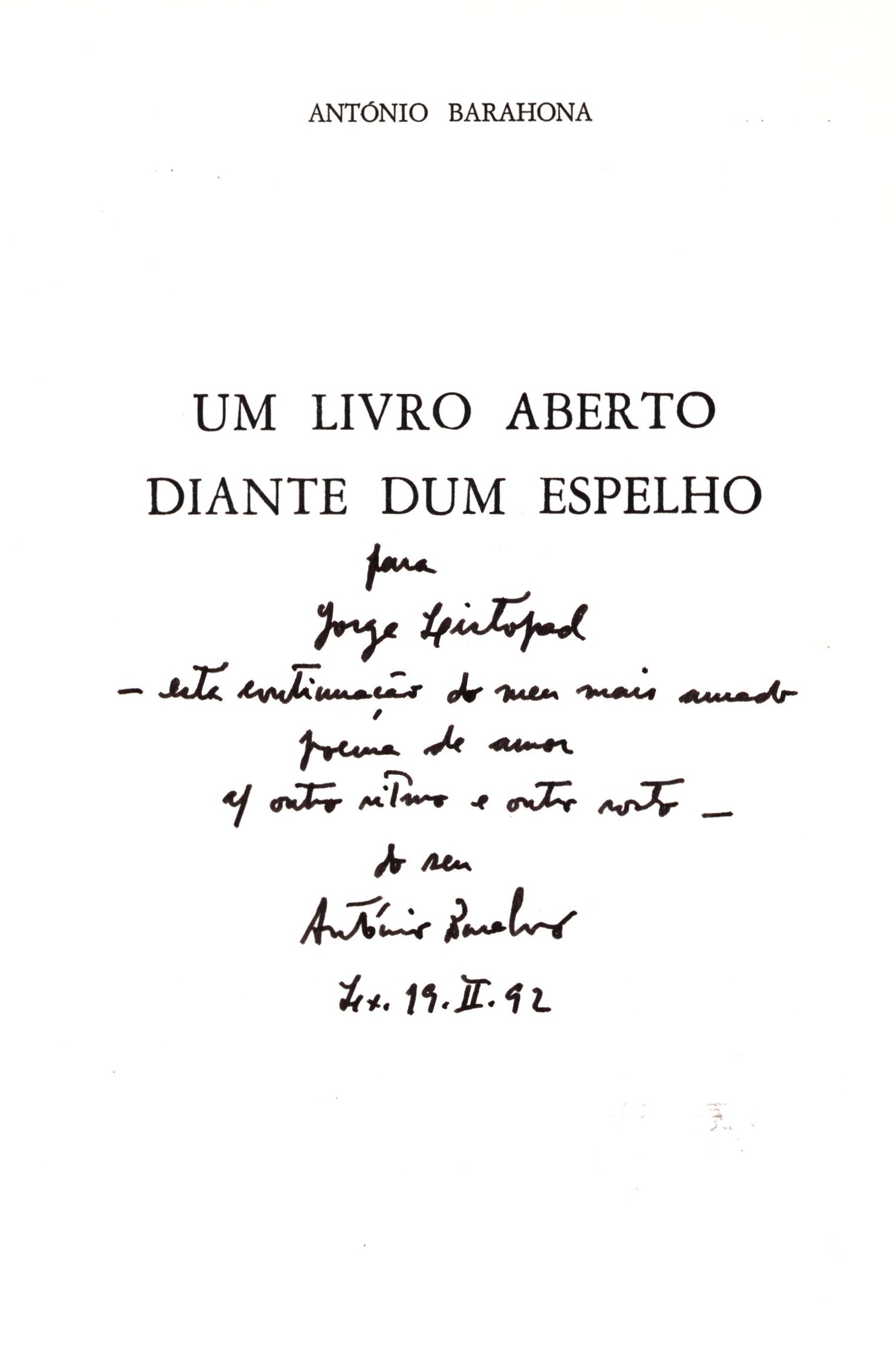 1. Názvové údajeUm livro aberto diante dum espelho / António Barahona