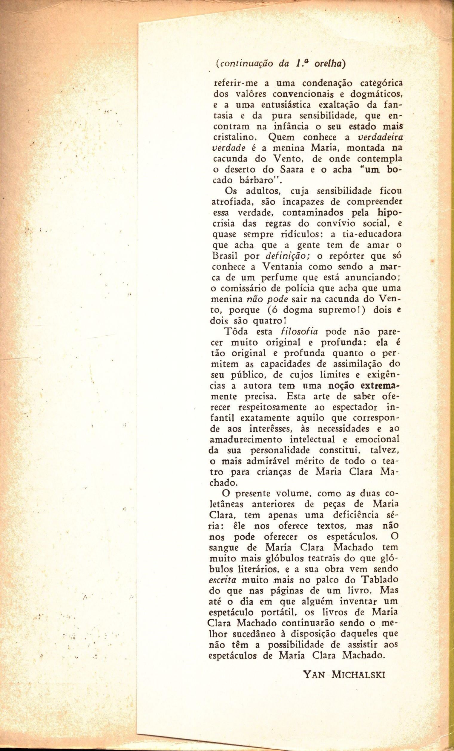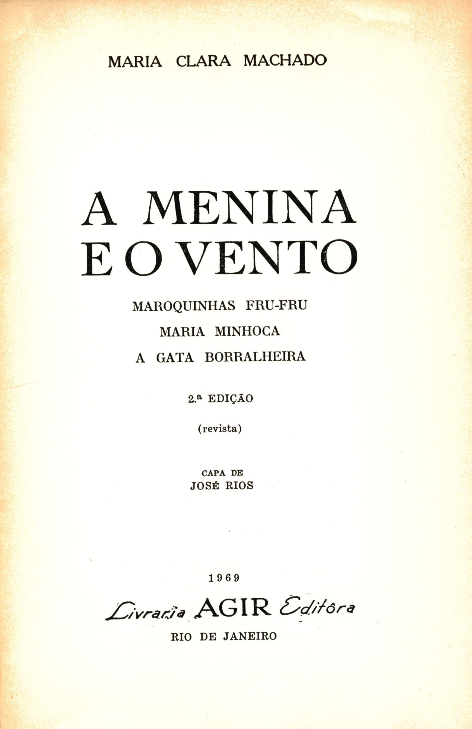 Názvové údaje A Menina e o Vento, Maroquinhas Fru-Fru, Maria Minhoca, A Gata Borralheira / Maria Clara Machado ; Capa de José Rios Osobní jméno Machado, Maria Clara, 1921-2001 (Autor) Další autoři Rios, José (Autor obálky) Korp. Agir (firma) (Nakladatel, vydavatel) Borsoi s / a. Indústria e comércio (Tiskař) Údaje o vydání 2.a edição Nakladatel Rio de Janeiro : Livraria Agir Editôra, 1969 Rozsah 170 stran : čb. fotografie ; 22 cm ISBN (Vázáno) Země vyd. Brazílie Jazyk dok. portugalština Poznámky Ilustrovaná obálka. - Typografický titulní list. - Obsah. - Čb. fotografie. - Na přední a zadní záložce zhodnocení autorčiny tvorby Yanem Michalskim. - Na zadní straně obálky soupis některých dalších knih vydaných ve stejném vydavatelství jako autorčina kniha.