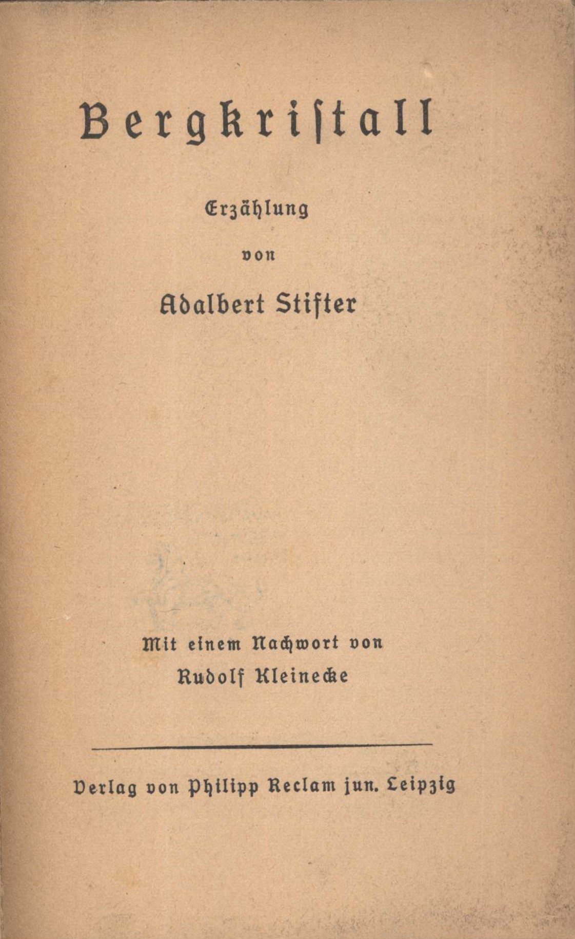Názvové údaje Bergkristall : Erzählung / von Adalbert Stifter ; mit einem Nachwort von Rudolf Kleinecke Osobní jméno Stifter, Adalbert, 1805-1868 (Autor) Další autoři Kleinecke, Rudolf, 1861-1940 (Autor doslovu, tiráže atd.) Korp. Philipp Reclam jun. (nakladatelství a tiskárna) (Nakladatel, vydavatel) Nakladatel Leipzig : Philipp Reclam jun., 1941 Rozsah 71 stran ; 16 cm Edice Reclams Universal-Bibliothek ; Nr. 3912