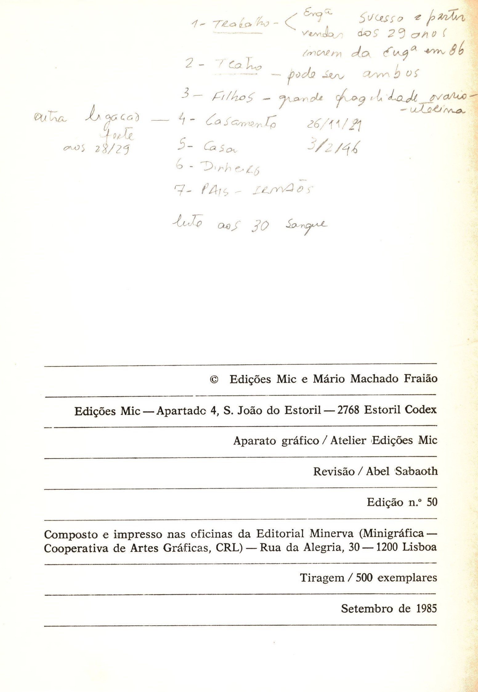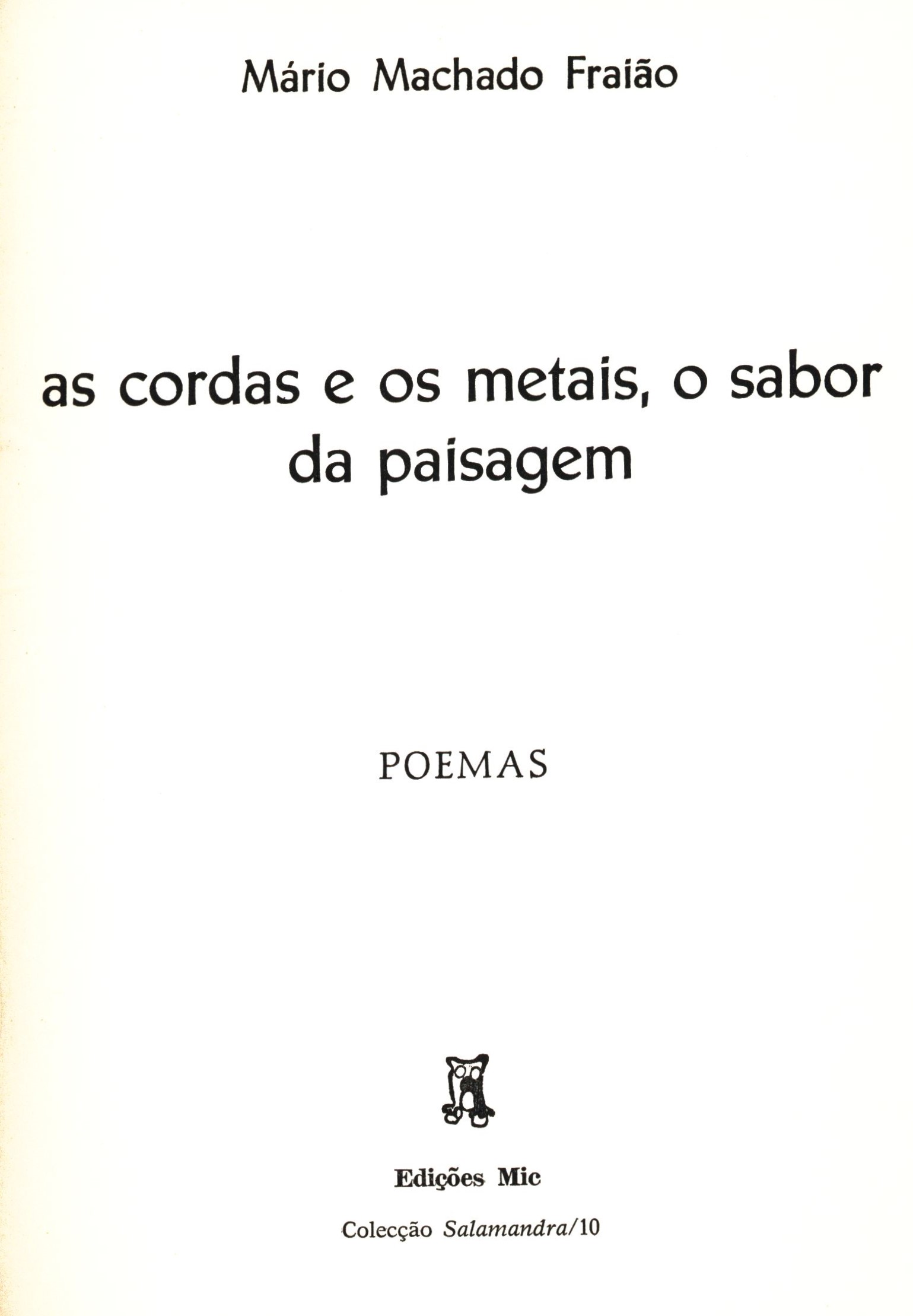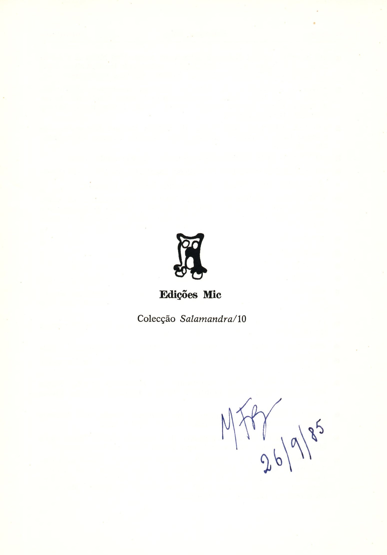 Colecção Salamandra (Ed. Mic)Země vyd. Portugalsko Jazyk dok. portugalština Poznámky Barevná typografická obálka. - Typografický titulní list.