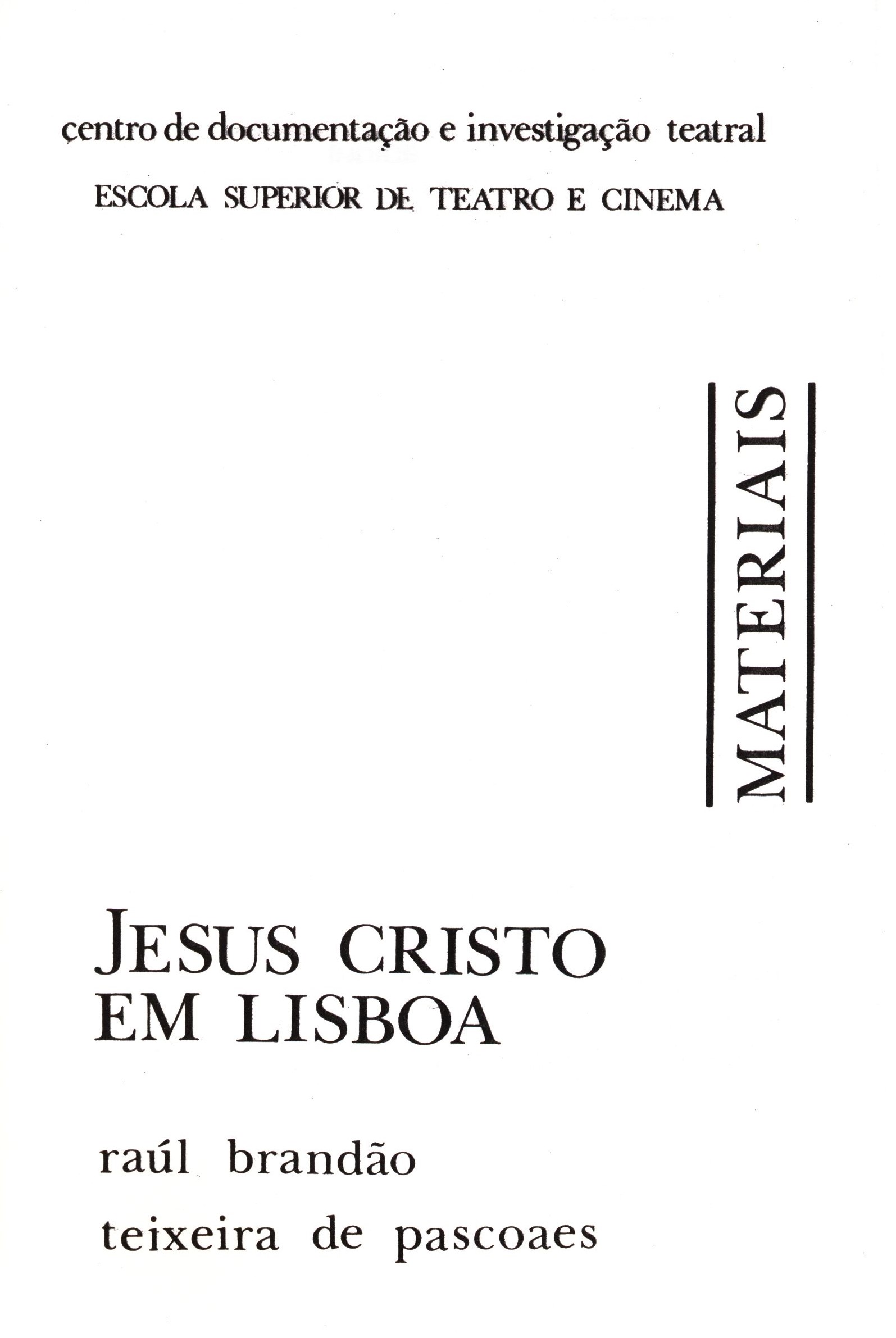 1. Názvové údajeJesus Cristo em Lisboa : Raúl Brandão, Teixeira de Pascoaes / Jorge Listopad ; Eugénia Vasques ; Maria Henriques