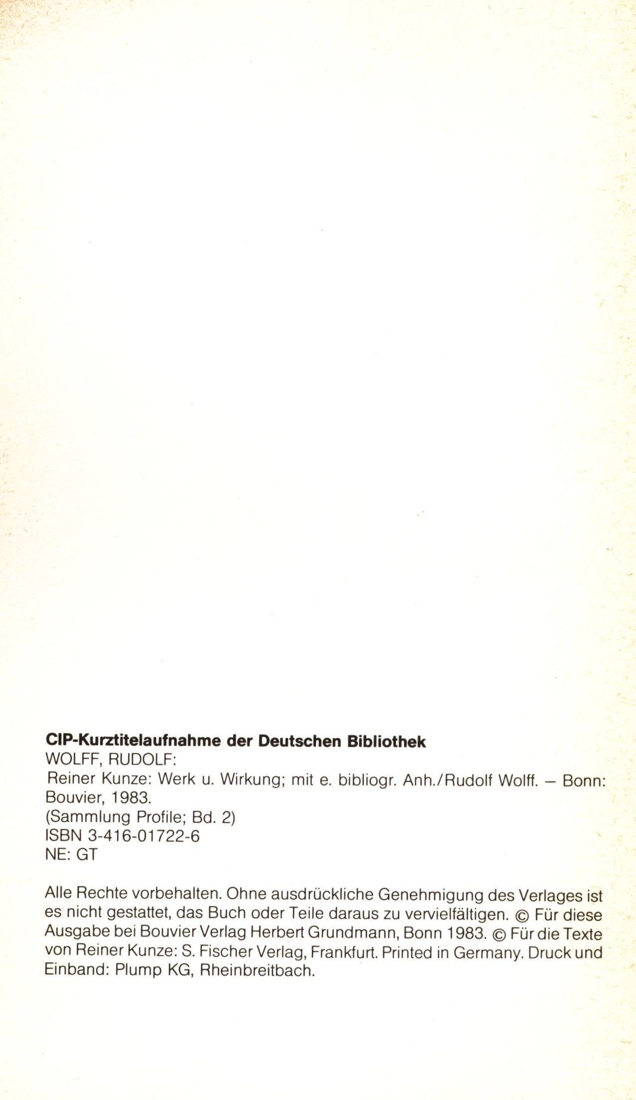 1. Názvové údajeReiner Kunze : Werk und Wirkung / Rudolf Wolff (Hrsg.)
