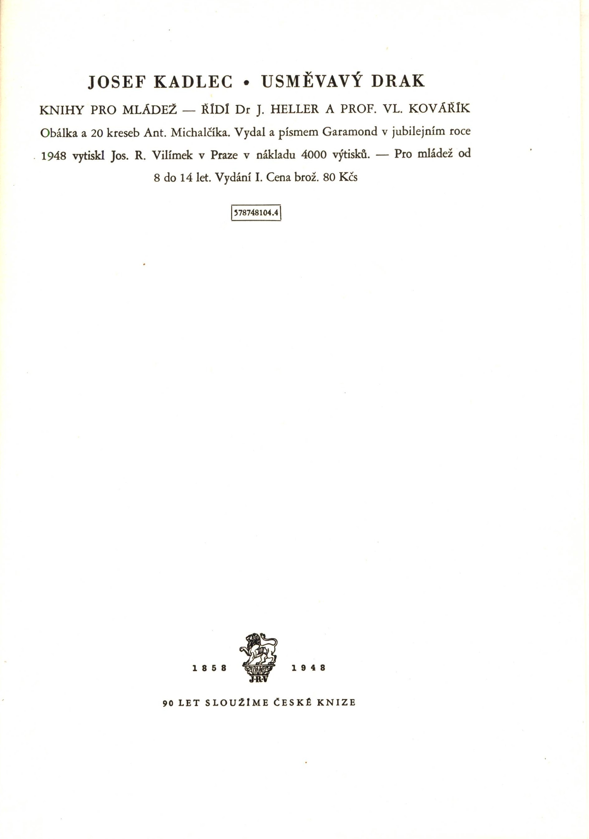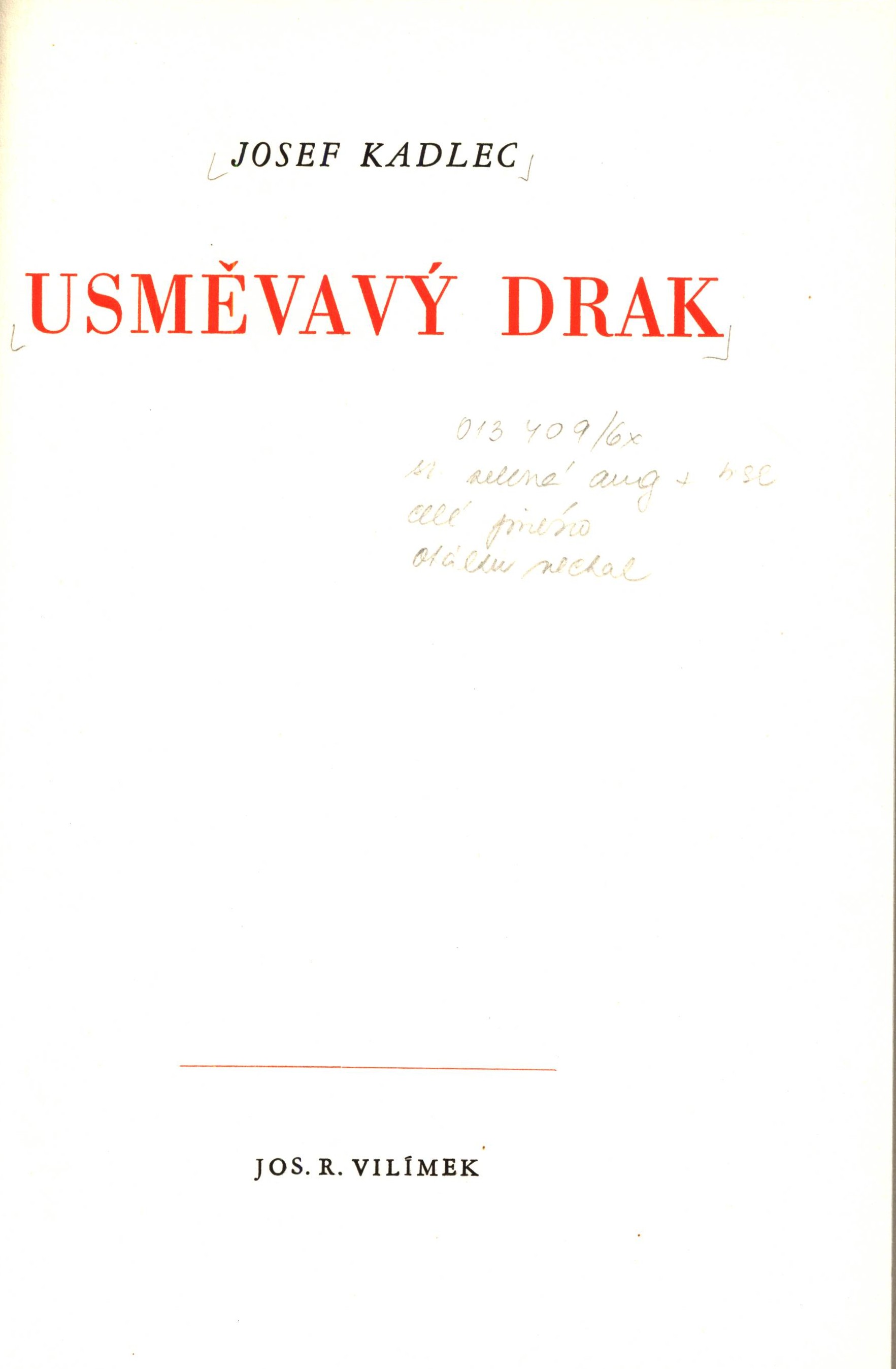 1. Názvové údajeUsměvavý drak / Josef Kadlec ; obálka a 20 kreseb Ant. Michalčíka