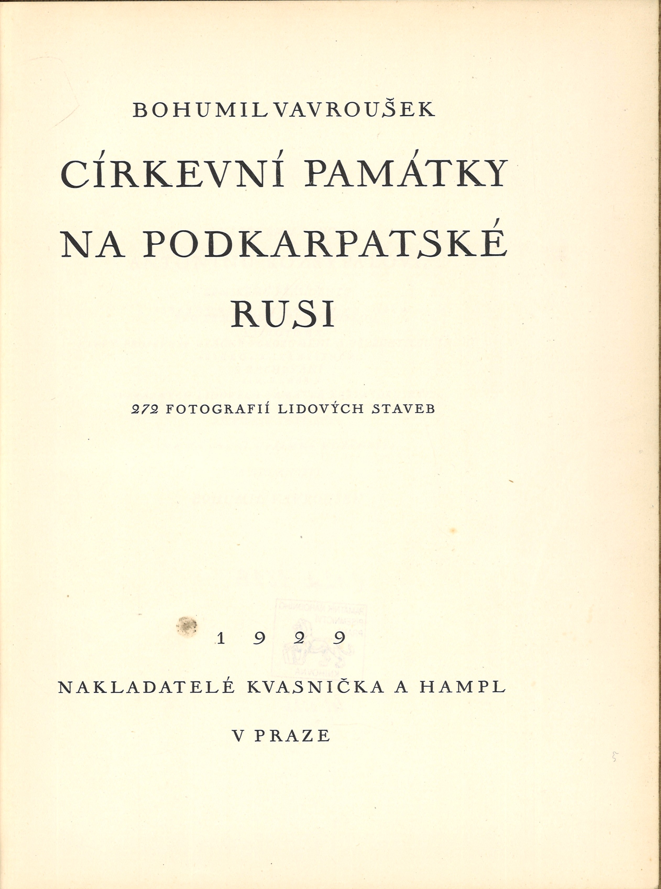 Názvové údaje Církevní památky na Podkarpatské Rusi : 272 fotografií lidových staveb / Bohumil Vavroušek Osobní jméno Vavroušek, Bohumil, 1875-1939 (Autor) Další autoři Kvasnička a Hampl (nakladatelství) (Nakladatel, vydavatel) Orbis (tiskárna) (Tiskař) Nakladatel V Praze : Kvasnička a Hampl, 1929 Výrobce Knihtiskárna "Orbis" Rozsah 21 stran, 136 stran obrazových příloh : ilustrace ; 30 cm ISBN (Vázáno) Země vyd. Česko Jazyk dok. čeština Poznámky Celoplátěná vazba s potiskem. - Ilustrace na vazbě. - Bez přebalu. - Úvod. - Předmluva. - Seznam reprodukcí. - Na přílohách černobílé fotografie zhotovené autorem (272 snímků)
