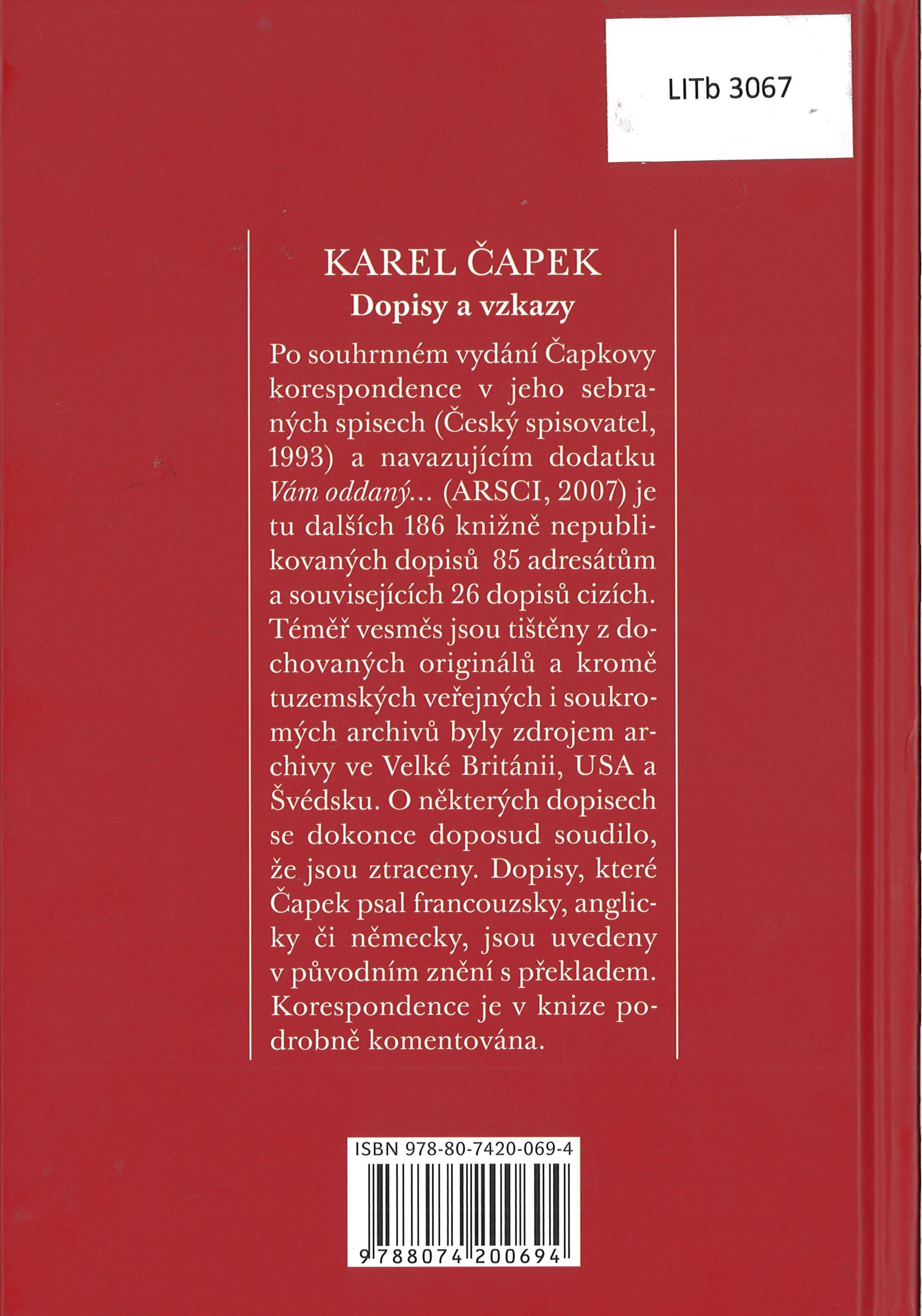 Jazyková pozn. Částečně souběžný anglický, francouzský a německý text Druh dok. monografie Osobní hesla Čapek, Karel, 1890-1938 - spisovatel, dramatik, novinář, kritik, překladatel Klíčová slova čeští spisovatelé * Čapek K. * korespondence * dopisy * stol. 20., 1. pol. * osobnosti kultury * komentované vydání * biografické informace * biografické medailonky MDT 821.162.3-051 * 82-6 * (044) * (0.072) Uživatelské pole PNP V knize uveřejněny kopie archiválií z fondů Literárního archivu Památníku národního písemnictví Signatura Přír.číslo Lokace Info LITb 03067 0103/2026 Sbírka