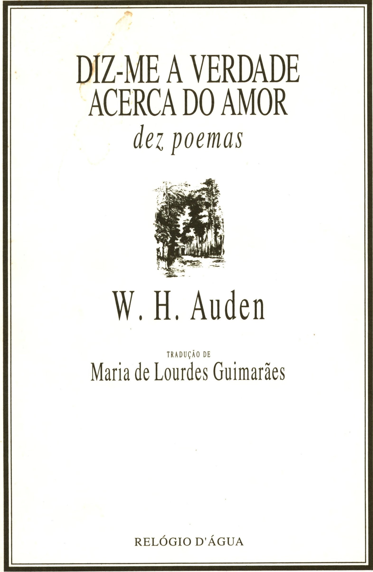 1. Názvové údajeDiz-me a Verdade Acerca do Amor / W. H. Auden ; tradução de Maria de Lourdes Guimarães