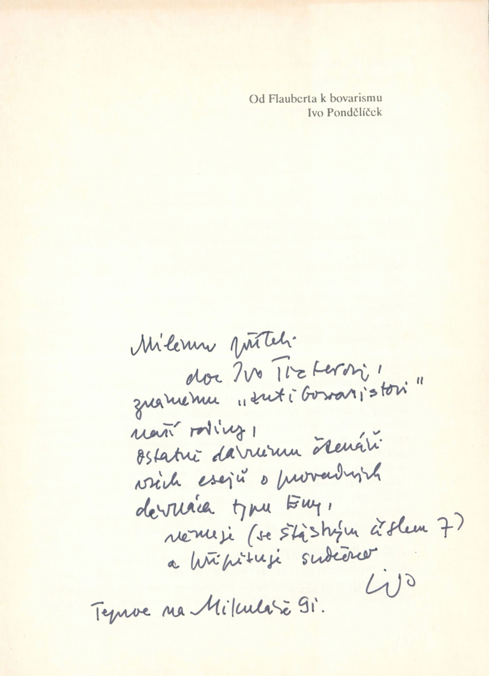 Anotace Esej o literatuře a výtvarném umění ve vztahu k rozmanitým psychologickým a sociálním jevům. Druh dok. monografie Klíčová slova česká literatura * esej * literatura * román * Flaubert G. * vztahy * sociologické jevy * psychologické jevy * psychologie * psychopatologie * hysterie * moderní doba MDT 82-31 * 616.891.2 * 159.9 * 82-4 * 821.162.3 Uživatelské pole PNP Náklad 250 číslovaných výtisků, z toho padesát (1-50) na křídovém papíře, autorem podepsaných. Kniha se sign. - pozůstalost Pelušky Bendlové. - Na titulním listu ručně psaná dedikace autora Ivo Treterovi s podpisem Ivo a datací na Mikuláše 91. - Tento výtisk má číslo 7, podpis autora v tiráži. Signatura Přír.číslo Lokace Info LITb 03101 0212/2026 Sbírka
