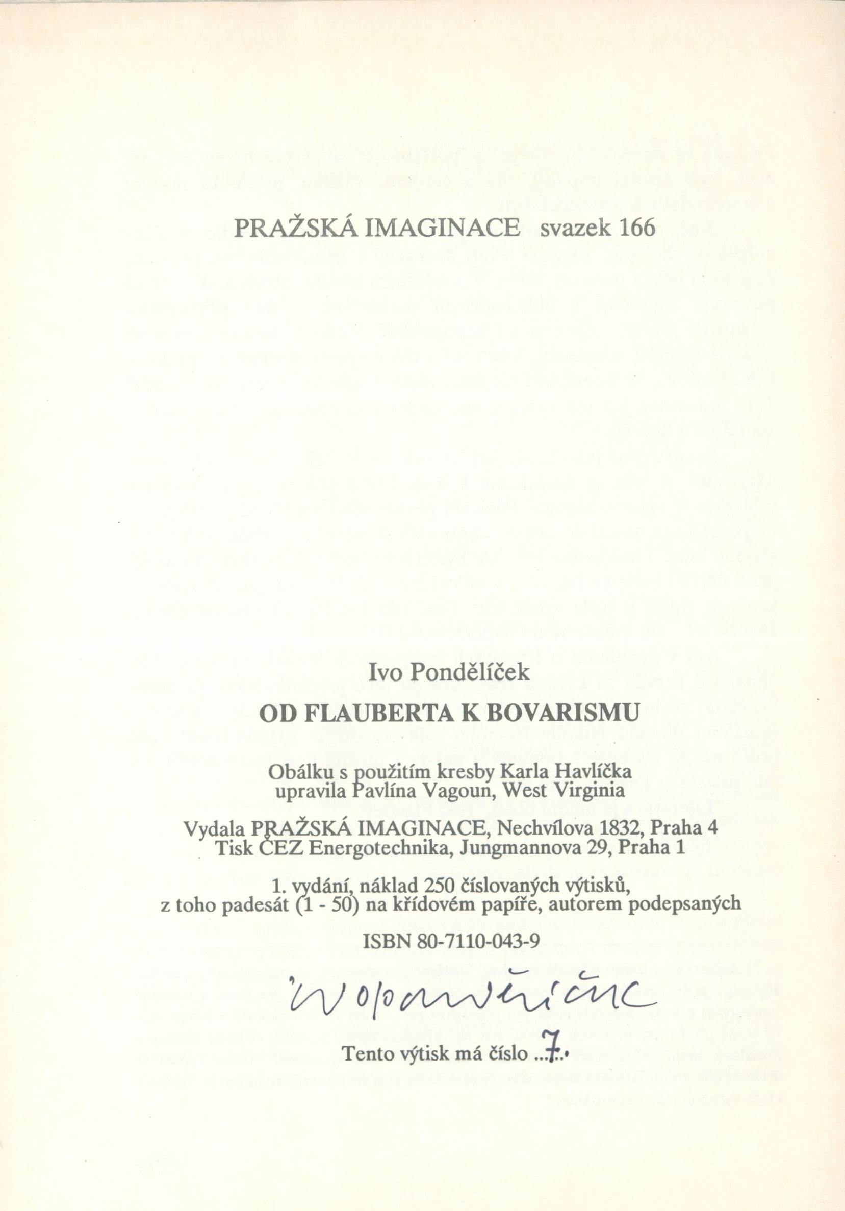 Názvové údaje Od Flauberta k bovarismu / Ivo Pondělíček ; obálku s použitím kresby Karla Havlíčka upravila Pavlína Vagoun, West Virginia ; text na zadní straně obálky Bohumil Hrabal Osobní jméno Pondělíček, Ivo, 1928-2019 Další autoři Vagoun-Gutierrez, Pavlína, 1965- (Autor obálky) Havlíček, Karel, 1907-1988 (Umělec) Hrabal, Bohumil, 1914-1997 (Autor) Korp. Pražská imaginace (nakladatelství) (Nakladatel, vydavatel) ČEZ - Energotechnika (tiskárna) (Tiskař) Údaje o vydání 1. vydání Nakladatel Praha : Pražská imaginace, 1991 Výrobce Praha : ČEZ Energotechnika Rozsah 27 stran ; 21 cm ISBN 80-7110-043-9 (volné dvoulisty v přebalu) Edice Pražská imaginace ; svazek 166