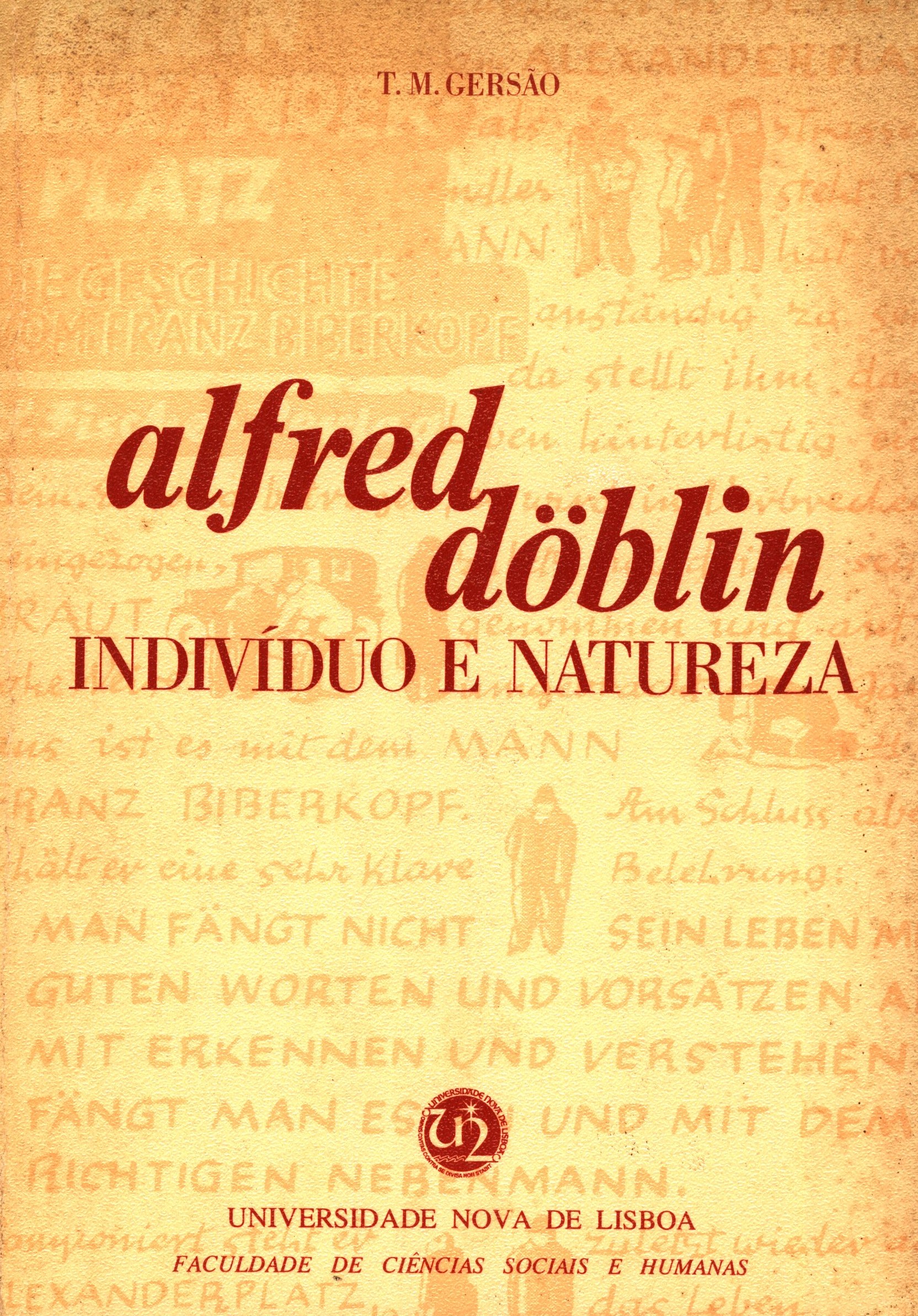 Názvové údaje Alfred Döblin : indivíduo e natureza / T. M. Gersão Osobní jméno Gersão, T. M. (Autor) Další autoři Universidade Nova de Lisboa (Nakladatel, vydavatel) (Tiskař) Údaje o vydání 1.a Edição em Português Nakladatel [Lisboa] : Universidade Nova de Lisboa, [1979] Rozsah 290 stran : čb. ilustrace ; 21 cm ISBN (Brožováno) Země vyd. Portugalsko Jazyk dok. portugalština Poznámky Zdobená obálka. - Čb. ilustrace na titulním listu. - Poznámka autorky. - Upozornění. - Úvod