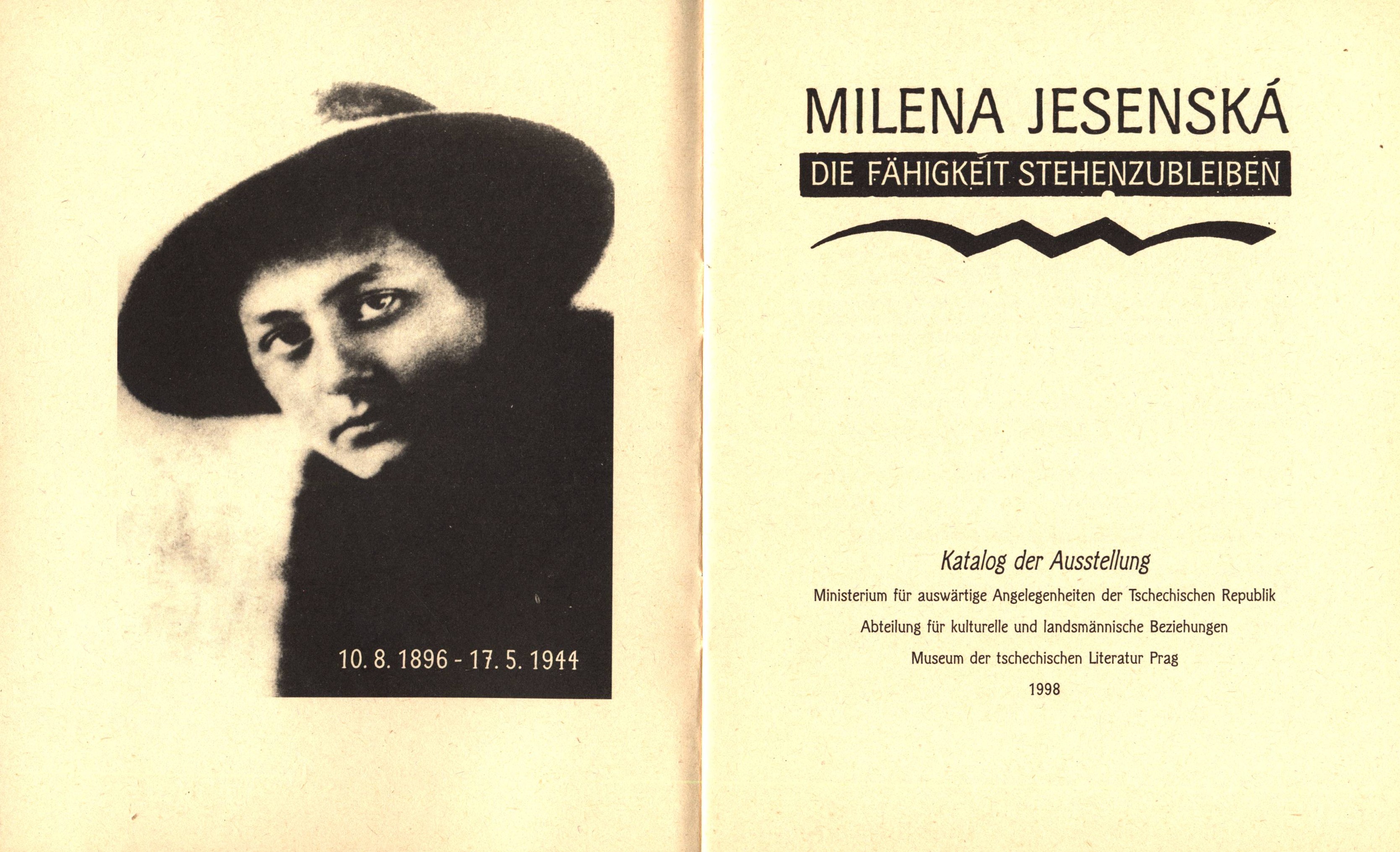 Názvové údaje Milena Jesenská : die Fähigkeit stehenzubleiben : Katalog der Ausstellung / Ministerium für auswärtige Angelegenheiten der Tschechischen Republik, Abteilung für kulturelle und landsmännische Beziehungen, Museum der tschechischen Literatur Prag Osobní jméno Jesenská, Milena, 1896-1944 (Autor) Další autoři Jirásková, Marie, 1938- (wpr) Korp. Česko. Ministerstvo zahraničních věcí. Odbor kulturních a krajanských vztahů (Nakladatel, vydavatel) (Organizátor akce) Památník národního písemnictví / Muzeum literatury (Nakladatel, vydavatel) (Organizátor akce) Údaje o vydání 1. Auflage Nakladatel Prag : Museum der tschechischen Literatur, 1998 Rozsah 32 stran, 4 strany barevných obrazových příloh ; ilustrace, faksimile ; 18 cm ISBN 80-900706-7-1 (Ministerstvo zahraničních věcí ČR ; v knize neuvedeno ; brožováno) Země vyd. Česko Jazyk dok. němčina Jazyk orig. čeština Poznámky Částečně přeloženo z češtiny. - Zdobená obálka. - Na přední i zadní straně obálky fotoportrét Mileny Jesenské. - Zdobené předsádky. - Frontispis. - Na barevých přílohách faksimile korespondence. - Biografický přehled. - Autorka úvodního textu: Marie Jirásková