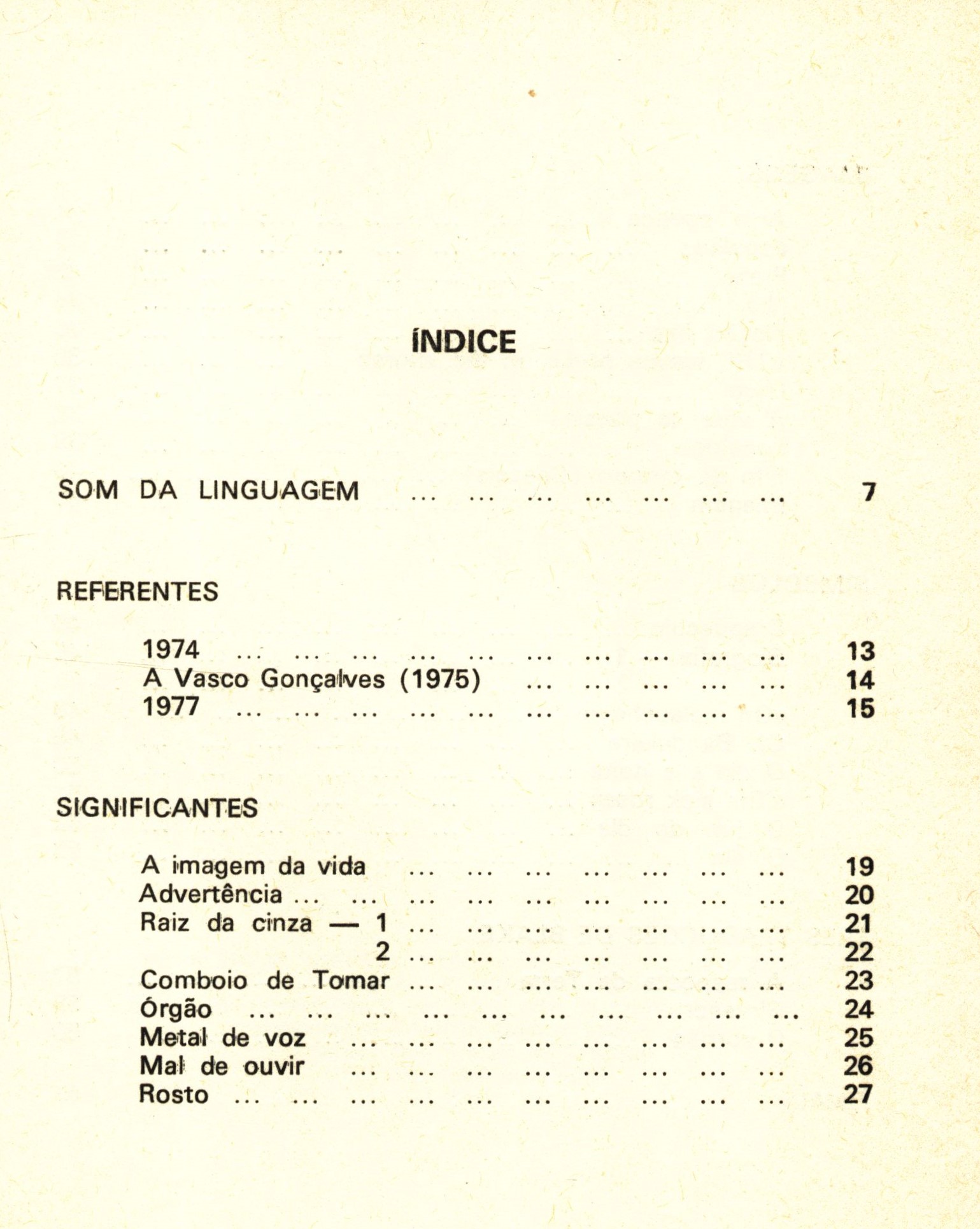 Druh dok. monografie Poznámky o skryté bibliografii a rejstřících Obsahuje bibliografii Klíčová slova portugalská literatura * portugalsky psaná literatura * poezie * sbírka básní * básně MDT 821.134.3 * 821=134.3 * 82-1 Uživatelské pole PNP Sign. Listopad 697: v knize rukopisné poznámky, pravděpodobně jde o dedikaci věnovanou Jorge Listopadovi s nečitelným podpisem Signatura Přír.číslo Lokace Info Listopad 0697 0265/2026 Sbírka
