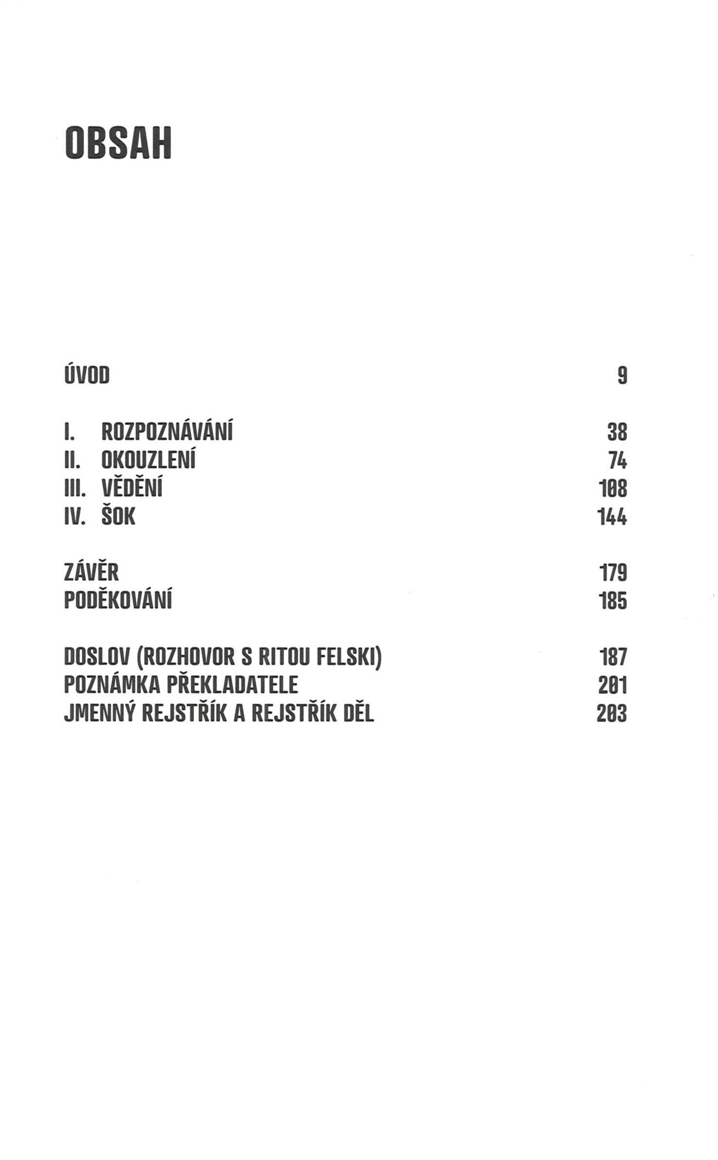 Poznámky Přeloženo z angličtiny. - Zdobená obálka. - Rozložený ilustrovaný titulní list. - Černobílé ilustrace na začátku kapitol. - Úvod a závěr autorky. - Poznámky. - Doslov (rozhovor s Ritou Felski). - Jmenný rejstřík a rejstřík děl. - Na přídeští anotace a medailonek autorky