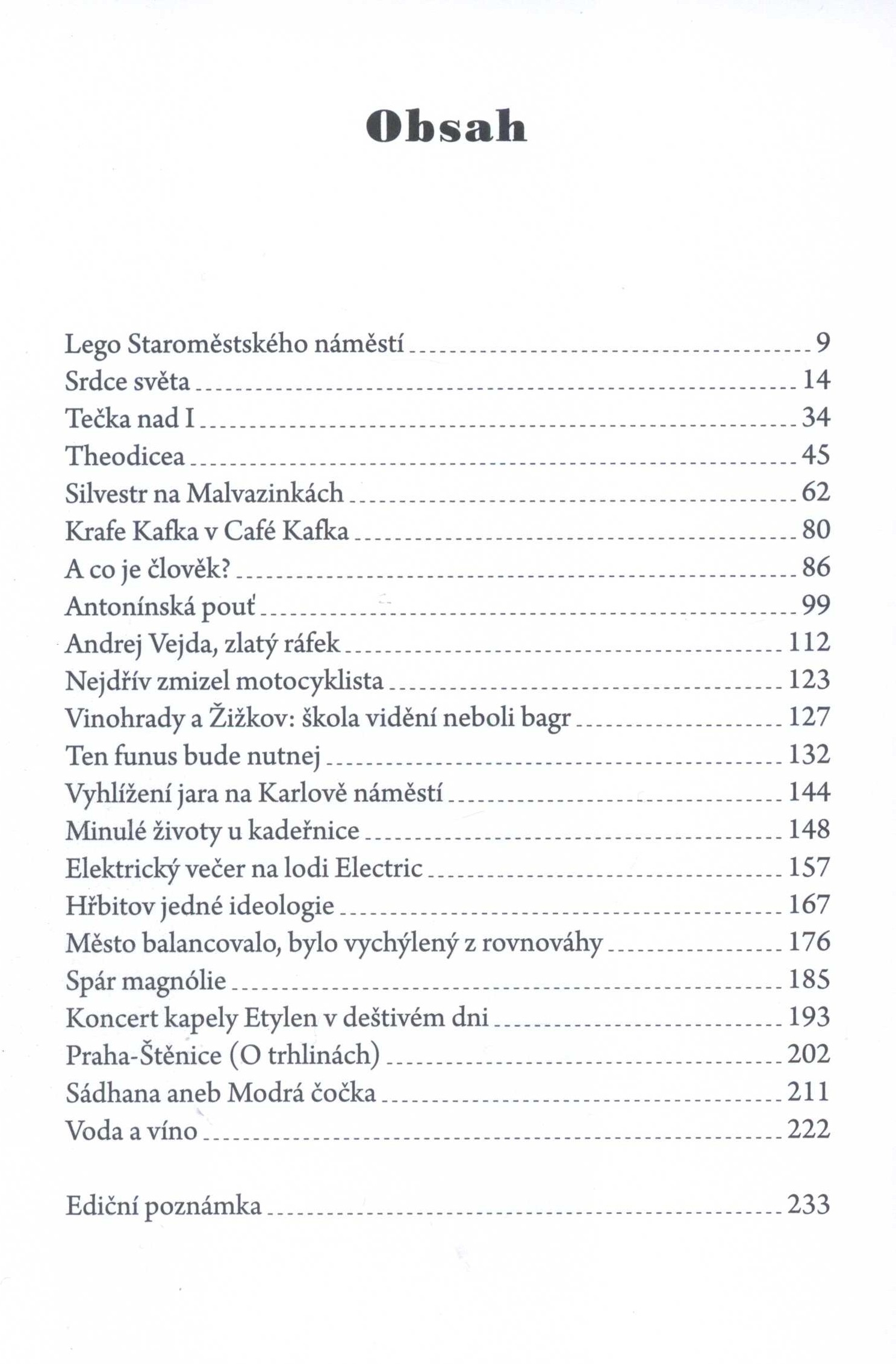 Anotace Soubor různobarevných povídek s pražskými náměty. Po knize pražských básní Kostel pro kuřáky vydává Sylva Fischerová knihu pražských povídek. Čteme tu pražské obrazy i příběhy - ty ikonické, jako v povídce Lego Staroměstského náměstí, i ty méně ikonické, jako je firemní večírek na parníku na Vltavě, celá Velká Praha (včetně Zbraslavi a Točné), je tu ale i scénka z pražského literárního života stejně jako minulé životy v podání pražské kadeřnice anebo snaha zodpovědět obligátní otázku: kde vlastně končí Žižkov a začínají Vinohrady. Natrefíme i na traktát o trhlinách, a jedné z postav se v noci zdá o modré čočce... Není to místy lehké čtení - protože tahle matička má drápy. A její obyvatelé taky. Pro povídky jsou příznačné rozmanité narativní strategie, s cílem představit Prahu a proměny jejího genia loci ve dvacátém a jednadvacátém století z různých, navzájem odlišných úhlů pohledu. Nakladatelská anotace. Druh dok. monografie Geografické heslo Praha (Česko) Klíčová slova česká próza * české povídky * soubor povídek MDT 821.162.3-3 * 821.162.3-32 * (437.311) * (0:82-32) Signatura Přír.číslo Lokace Info LITb 03137 0335/2026 Sbírka