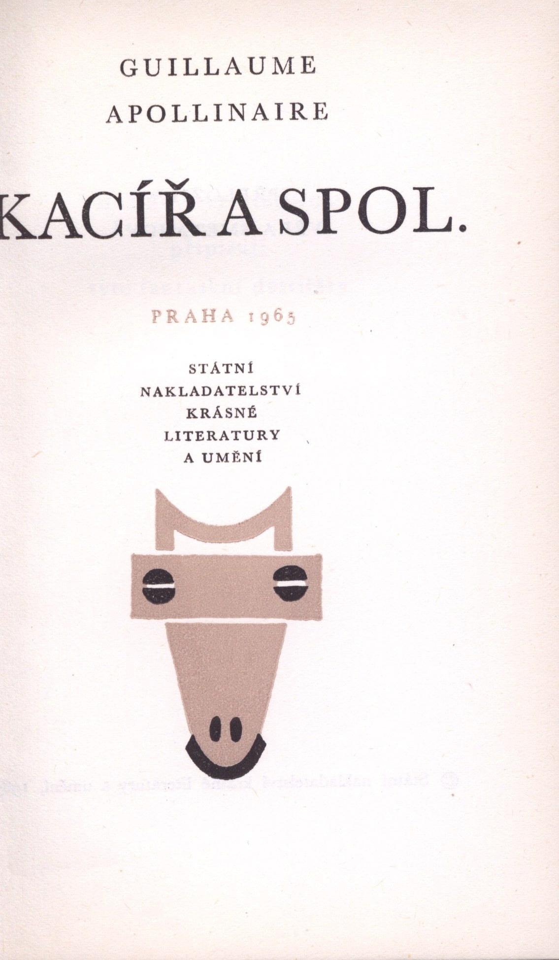 Názvové údaje Kacíř a spol. / Guillaume Apollinaire ; [z francouzského... přeložila Věra Smetanová ; doslov a ediční poznámku napsal Vladimír Diviš ; původní lineoryty Josefa Čapka ; v grafické úpravě Václava Bláhy] Osobní jméno Apollinaire, Guillaume, 1880-1918 (Autor) Další autoři Smetanová, Věra, 1922-1967 (Překladatel) Diviš, Vladimír (Autor úvodu atd.) Čapek, Josef, 1887-1945 (Ilustrátor) Korp. Státní nakladatelství krásné literatury a umění (Nakladatel, vydavatel) Knihtisk (tiskárna) (Tiskař) Údaje o vydání První úplné vydání Nakladatel Praha : Státní nakladatelství krásné literatury a umění, n. p., 1965 Výrobce (Knihtisk, n. p.) Rozsah 262, [6] s. : il. ; 17,3 cm ISBN (váz.) Kčs 12,50 Země vyd. -cs Jazyk dok. čeština Jazyk orig. francouzština Poznámky Barevně zdobená obálka. - Zdobená vazba. - Nakladatelská značka. - Titul s ilustrací. - Celostránkové barevné ilustrace. - Doslov. - Ediční poznámka. - Tiráž.
