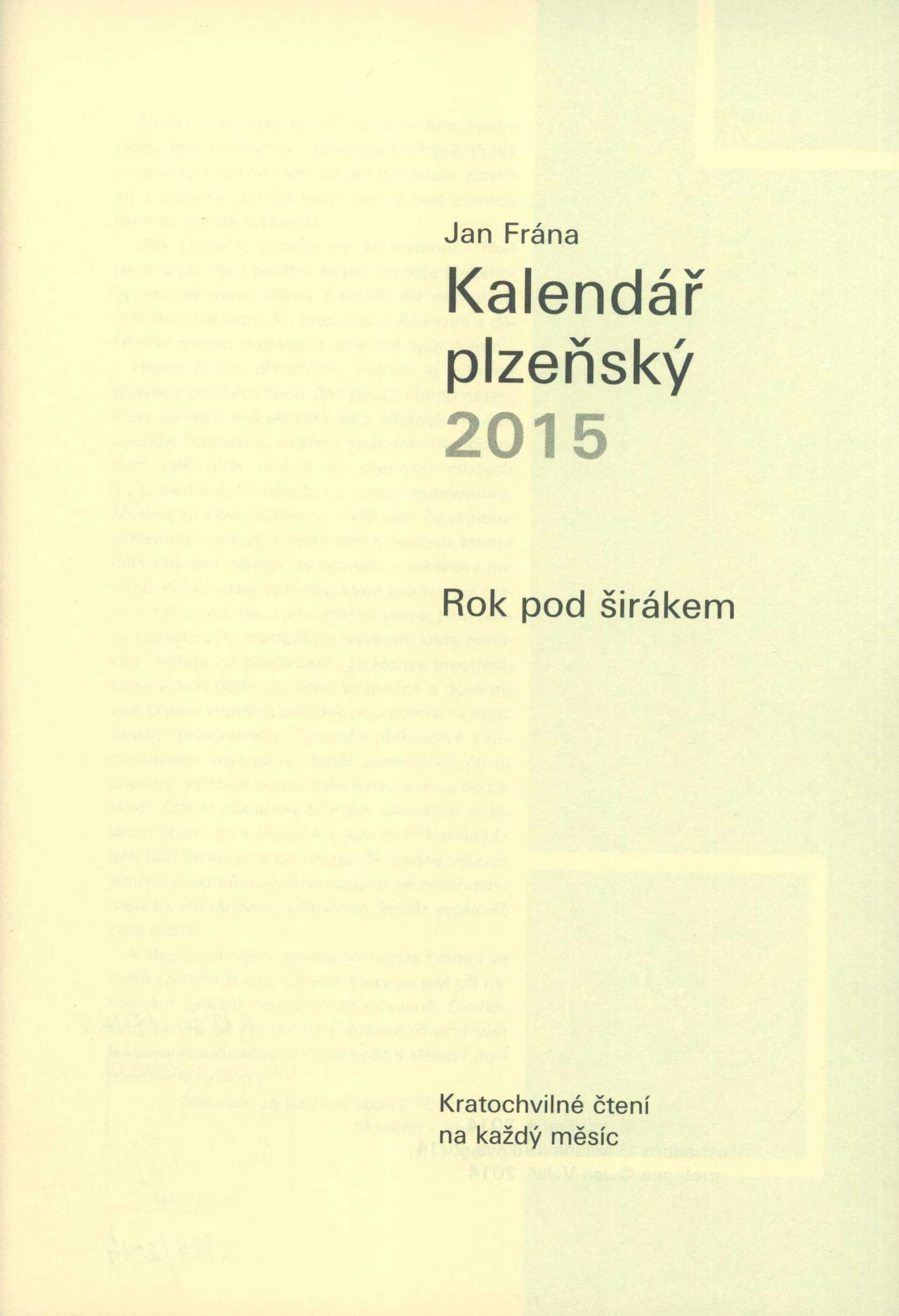 Názvové údaje Kalendář plzeňský 2015 : kratochvilné čtení na každý měsíc. Rok pod širákem / Jan Frána Osobní jméno Frána, Jan, 1965- (Autor) Další autoři Valeš, Jan (Autor úvodu atd.) Kutková, Milena, 1961- (Ilustrátor) Korp. Pro libris (občanské sdružení, Plzeň) (Nakladatel, vydavatel) Roč., číslo 2015 Nakladatel Plzeň : Pro libris, 2014 Výrobce MK-tisk Miroslav Kratochvíl Rozsah 60 stran : ilustrace Klíčová slova česká próza * regionální próza * Plzeňsko * literární kalendář * ročenky Nadřízená jednotka Kalendář plzeňský Počet ex. 1, z toho volných 1 Druh dok. PERIODIKA - Svázaný ročník periodika Signatura C12b 15365