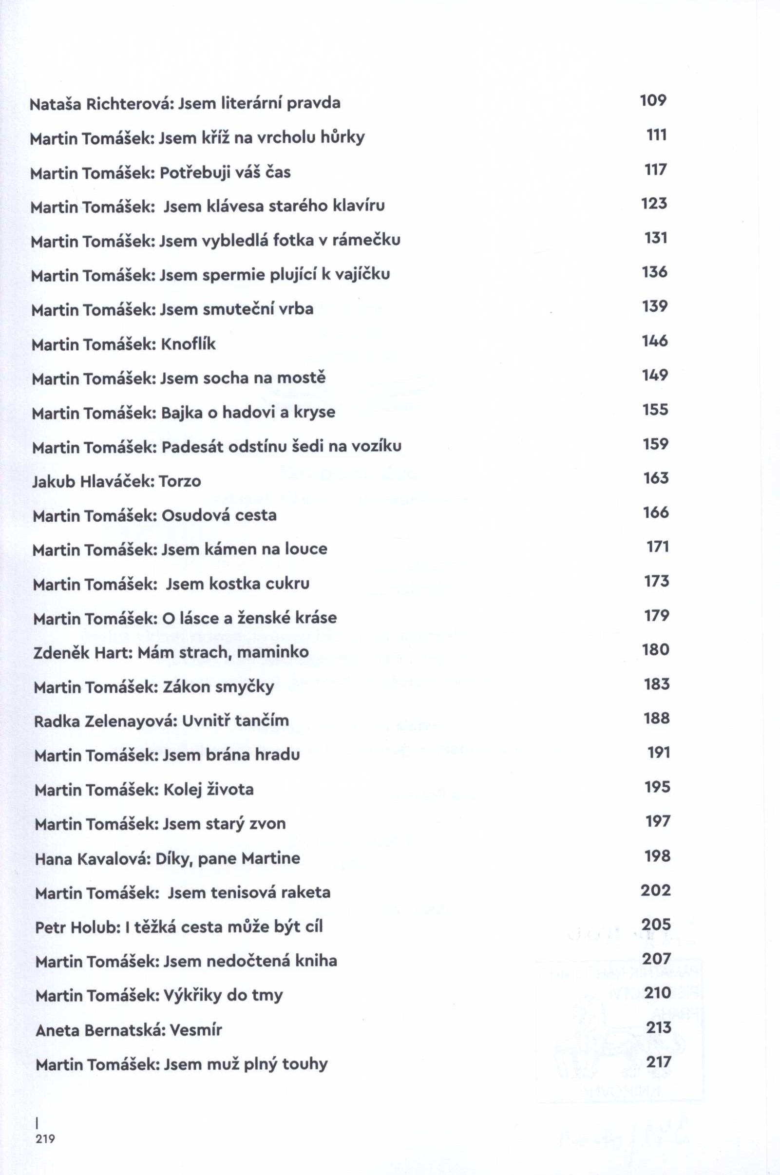 Klíčová slova česká literatura * próza * autobiografické příběhy * korespondence * tělesně postižení * Tomášek M. * Česko * stol. 21.