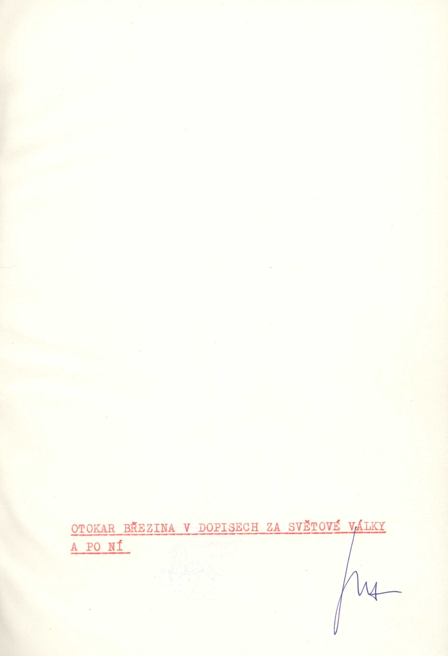 Názvové údaje Otokar Březina v dopisech za světové války a po ní / Petr Holman Osobní jméno Březina, Otokar, 1868-1929 (Autor) Další autoři Holman, Petr, 1951-2019 (Sestavovatel, kompilátor) (Nakladatel, vydavatel) Nakladatel [Česko] : [Petr Holman], [1988] Rozsah 1 svazek (nestránkováno) ; 24,5 cm ISBN (Vázáno) Země vyd. Česko Jazyk dok. čeština Poznámky Písmo v červené barvě. - Strojopis.