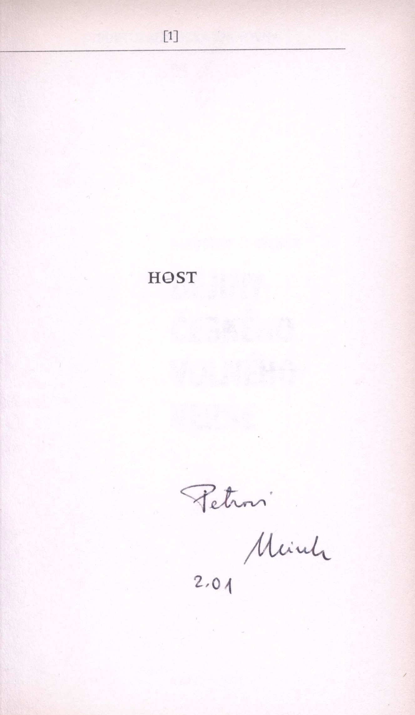 Sign. Holman-Březina 495: Knihovna Petra Holmana. - Před titulním listem ručně psaná dedikace autora "Petrovi" [Holmanovi] s podpisem a datací.