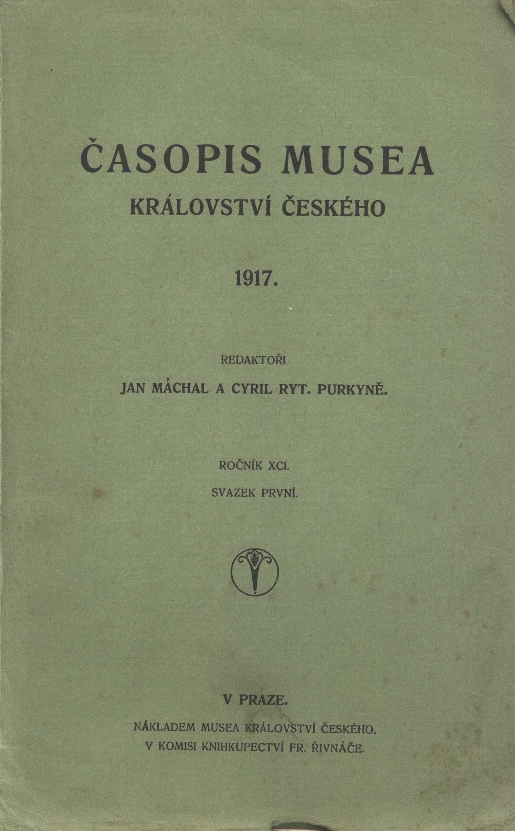 Časopis Musea Království českého. -- Ročník 91, svazek 1 (1917). -- V Praze : nákladem Musea Království českého, 1914. -- V komisi Knihkupectví Fr. Řivnáče. -- Tiskem Pražské akciové tiskárny. -- 136 stran ; 23 cm. -- Obsahuje bibliografické odkazy. -- Redaktoři Jan Máchal a Cyril Purkyně.